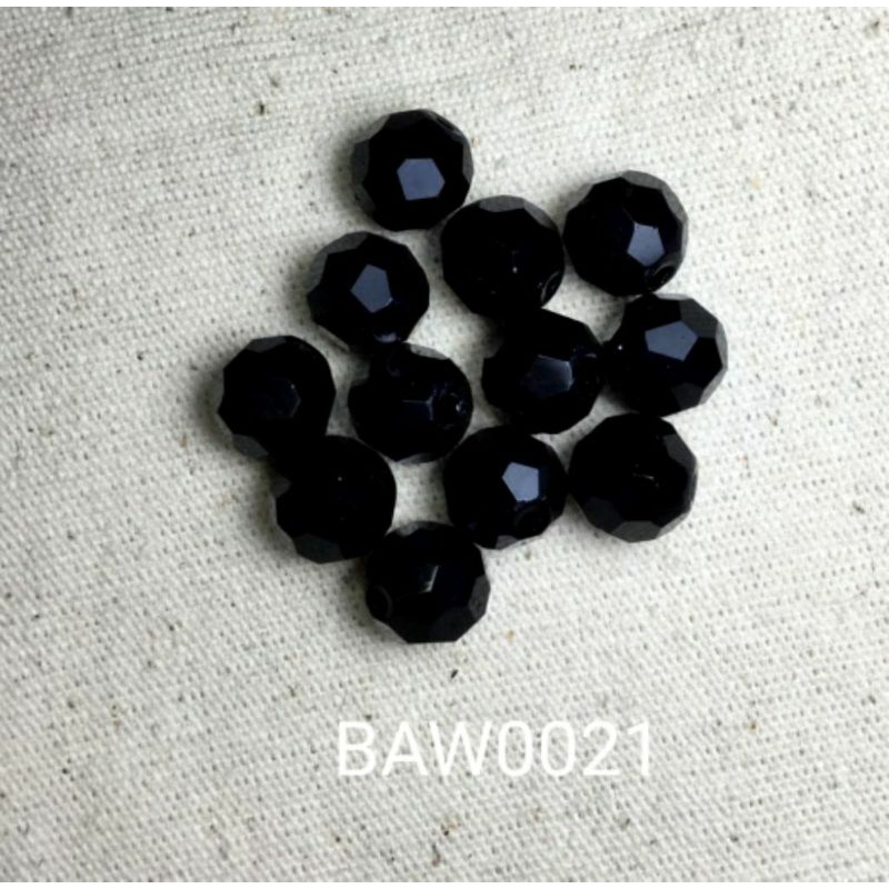 Manik-manik kristal bulat facet 10 mm warna black solid per lusin