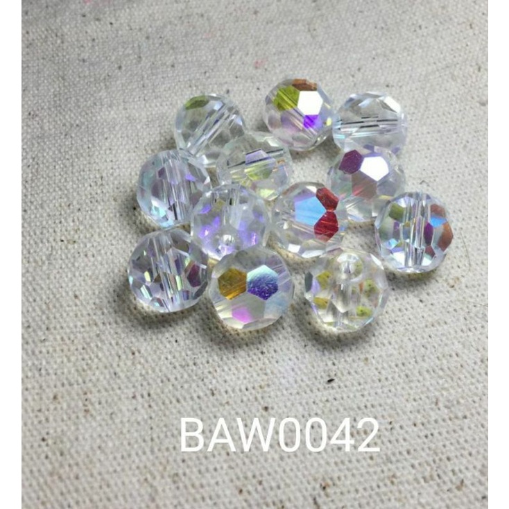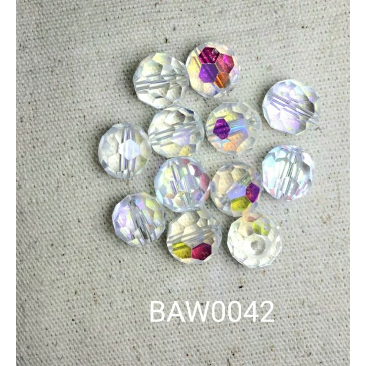 Manik-manik kristal bulat facet 10 mm clear AB isi 12 pcs