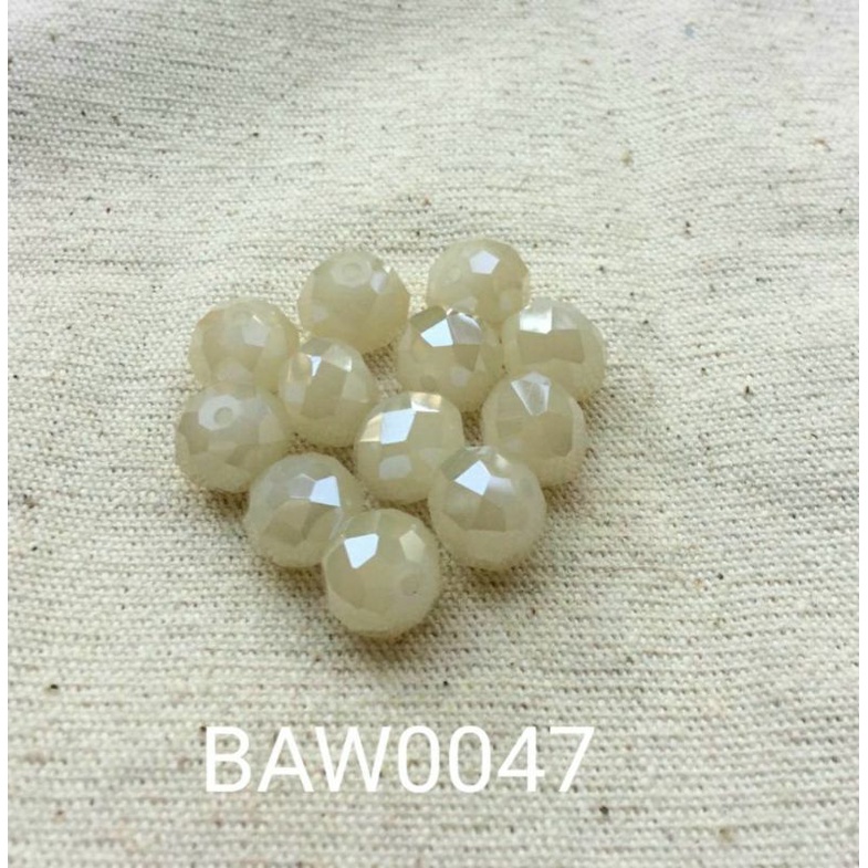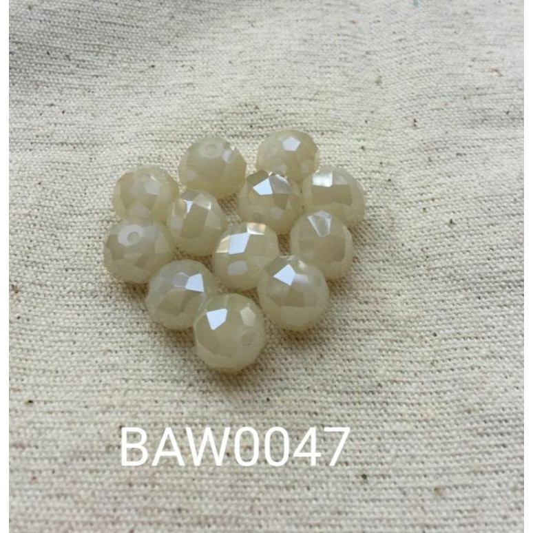 Manik-manik kristal bulat oval facet 10 mm white solid AB isi 12