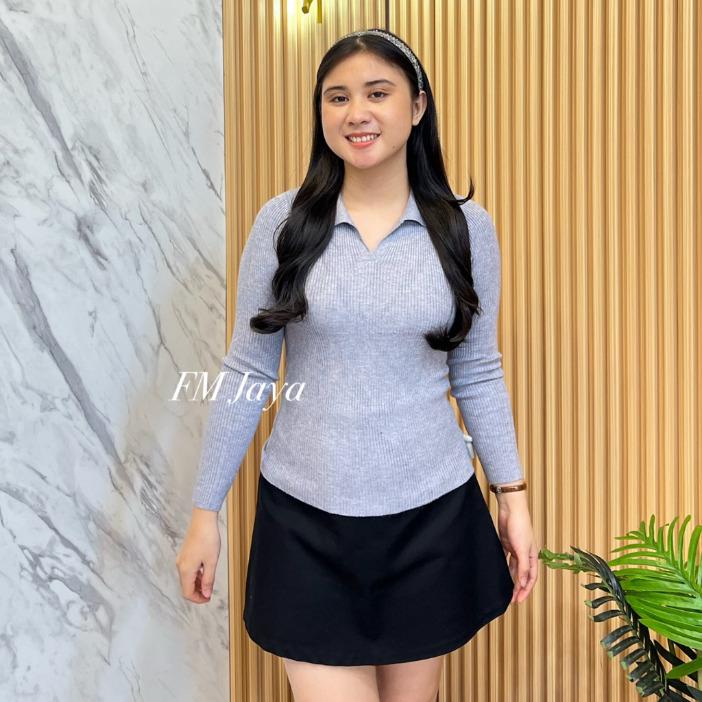 ATASAN RAJUT IMPORT KERAH 128 || KNIT TOP KERAH LONGSLEEVE / BLOUSE RAJUT LENGAN PANJANG
