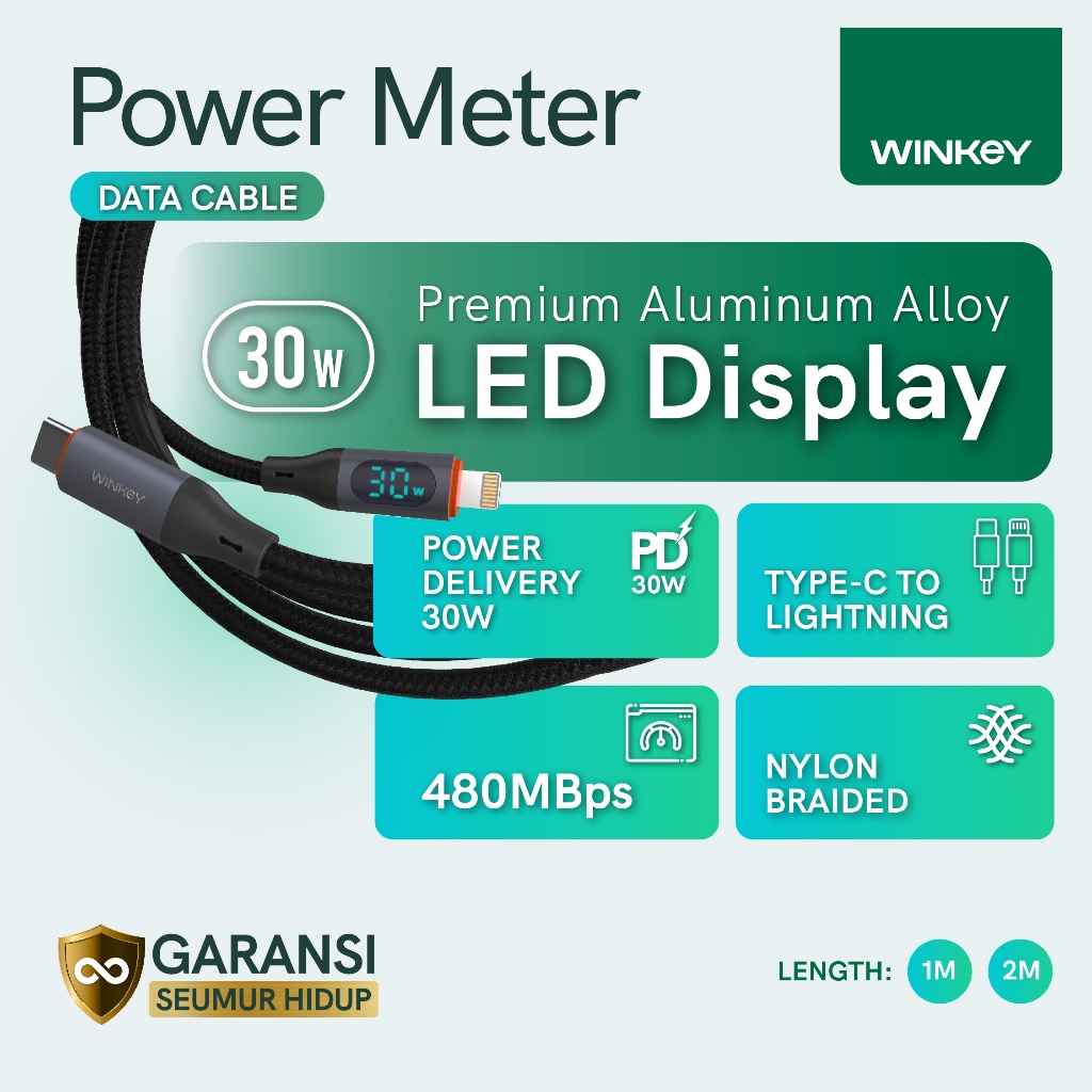 WINKEY Kabel Data iPhone Power Meter Type-C to Lightning Fast Charging PD 20W LED Display