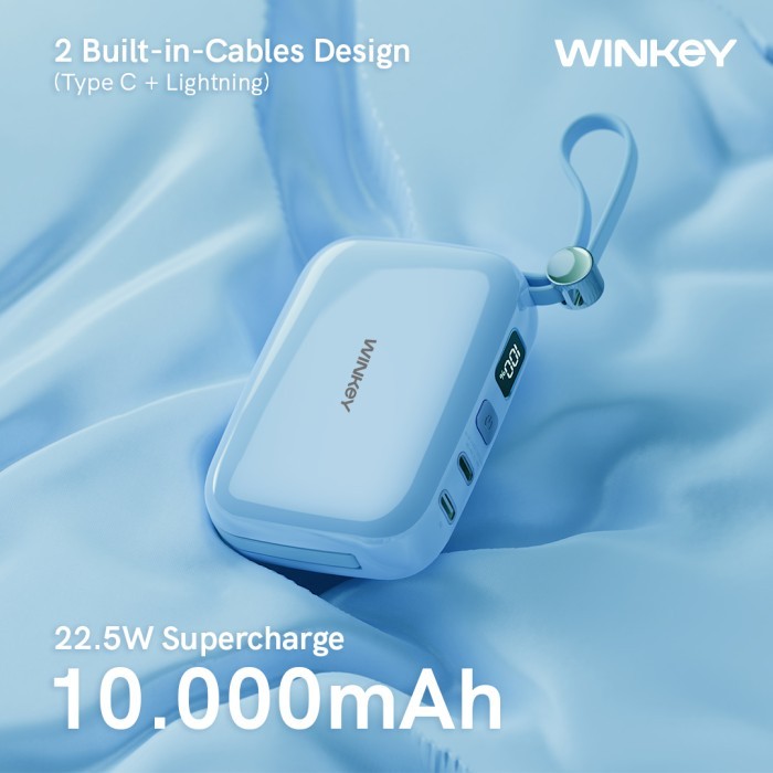 WINKEY Powerbank Pixie 10000mAh Pocket Size Built in Cable 2 Port Fast Charging PD 20W QC 22.5W