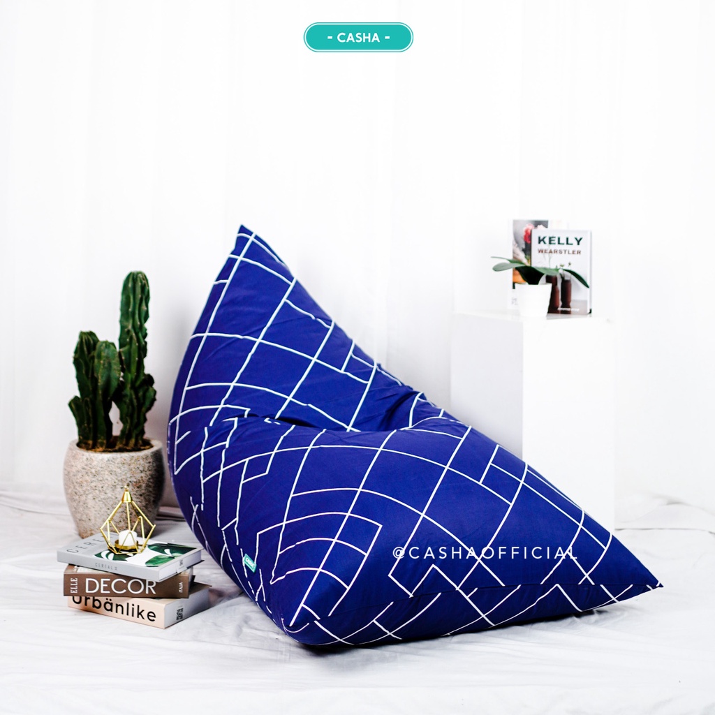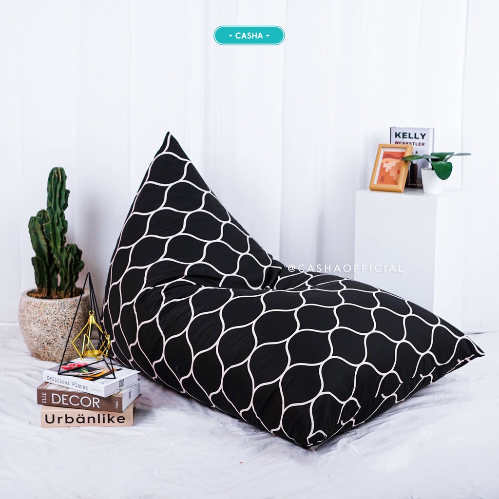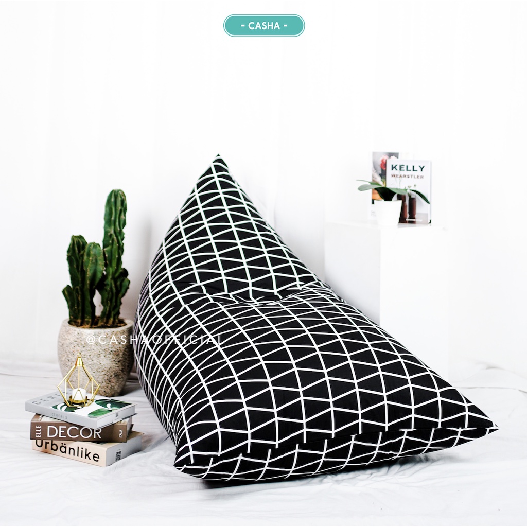 CASHA Triangle 75×125 Katun Motif PLUS ISI - Bean Bag Murah - Bean Bag Dewasa - Sofa Millenial - Sofa Minimalis