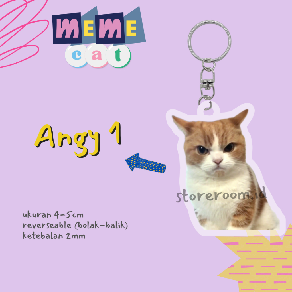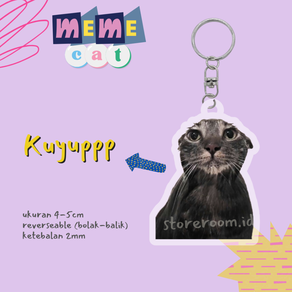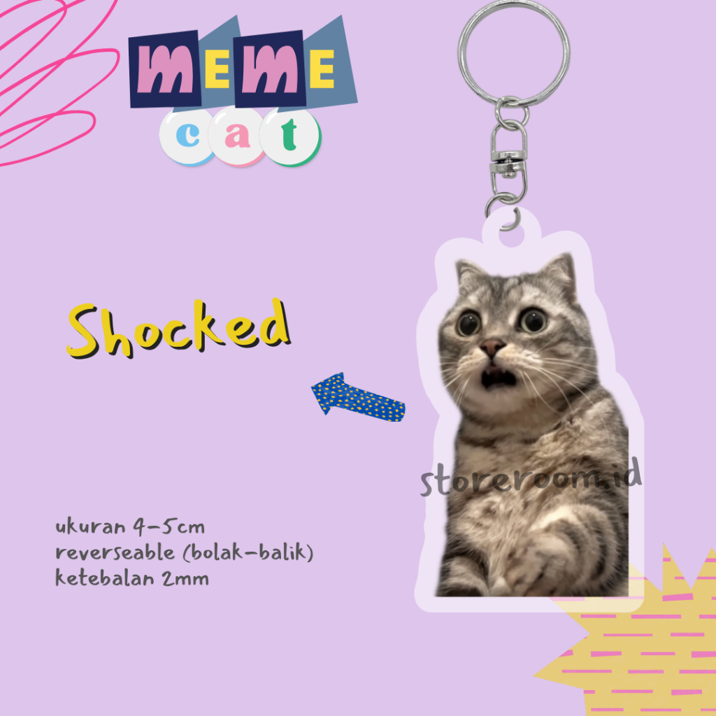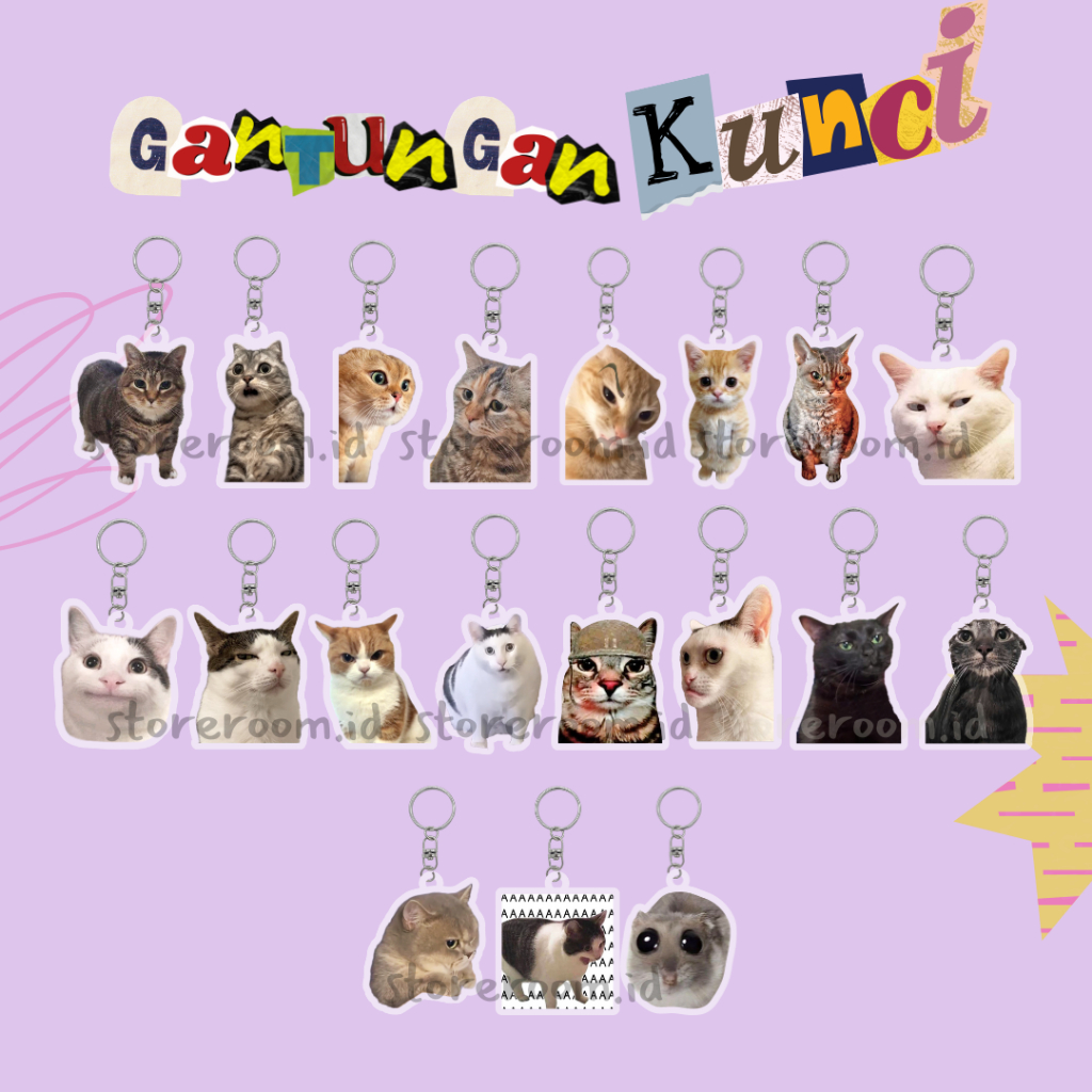 Ganci Meme Kucing - Keychain MEME CAT - Gantungan kunci 2 sisi, Kado Akrilik