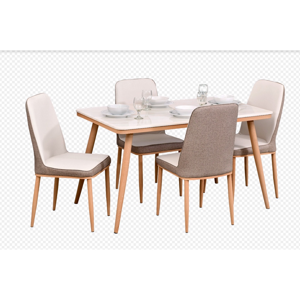 Socozy - Meja makan marble dengan 4 kursi warna coffee brown mewah