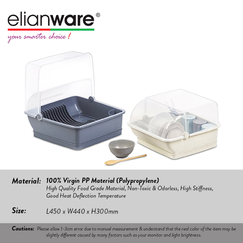 Elianware Extra Large Dust Free Home Dish Rack Disk Drainer with Cover E-288