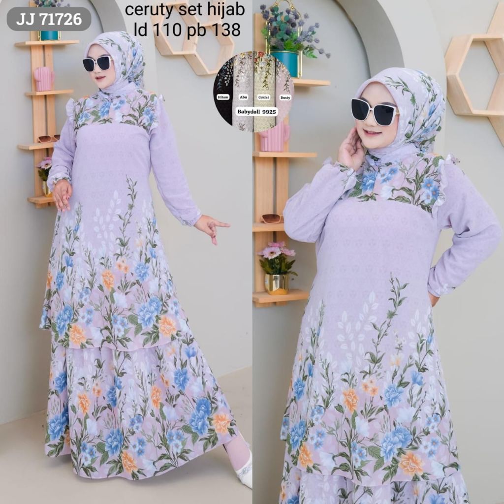 JJ 71726 (isi 2) ASYA Gamis Set Hijab Ceruty Lebar Mayung Premium Motif Cantik Syari Jilbab Muslimah Busui