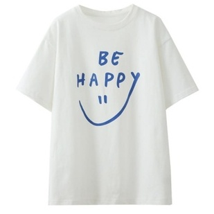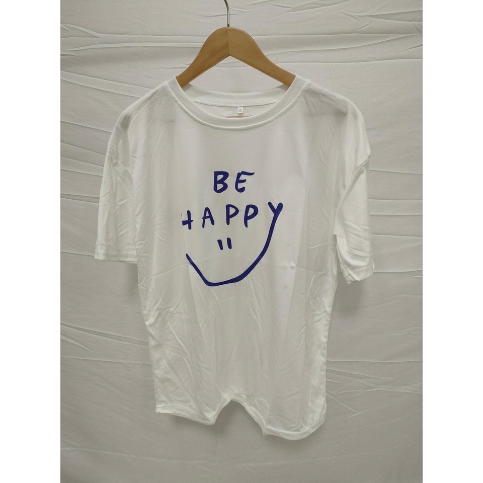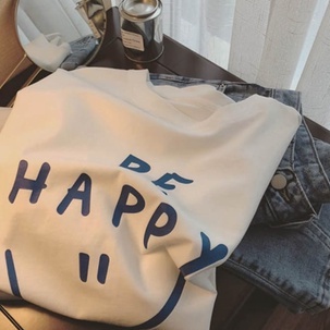 Oversize Tee Tshirt Wanita Model Longgar Motif Tulisan Be Happy - Kualitas Import 100%