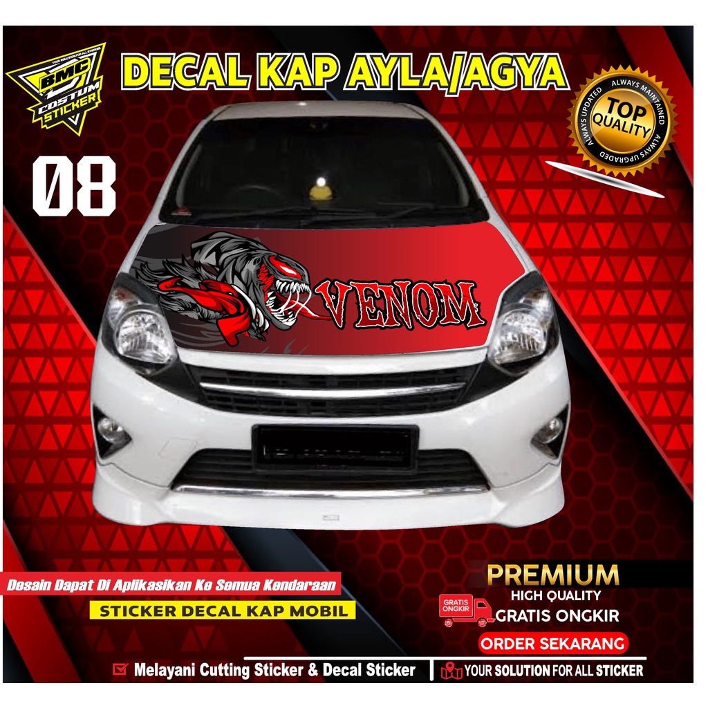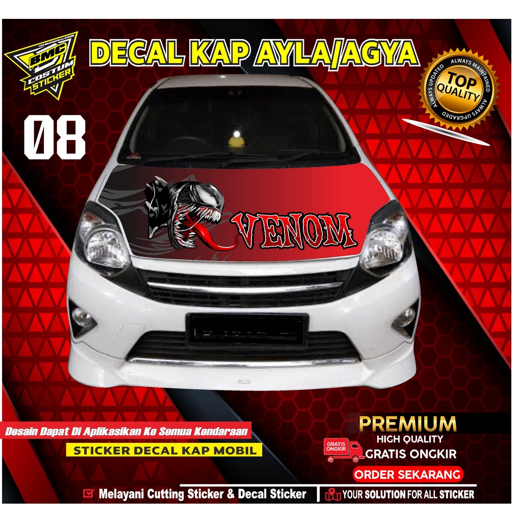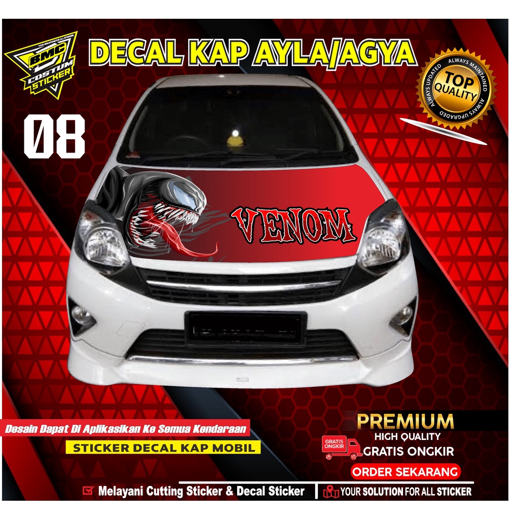 STICKER DECAL KAP MESIN AYLA/AGYA.STIKER DECAL KAP MOBIL DESAIN VENOM.