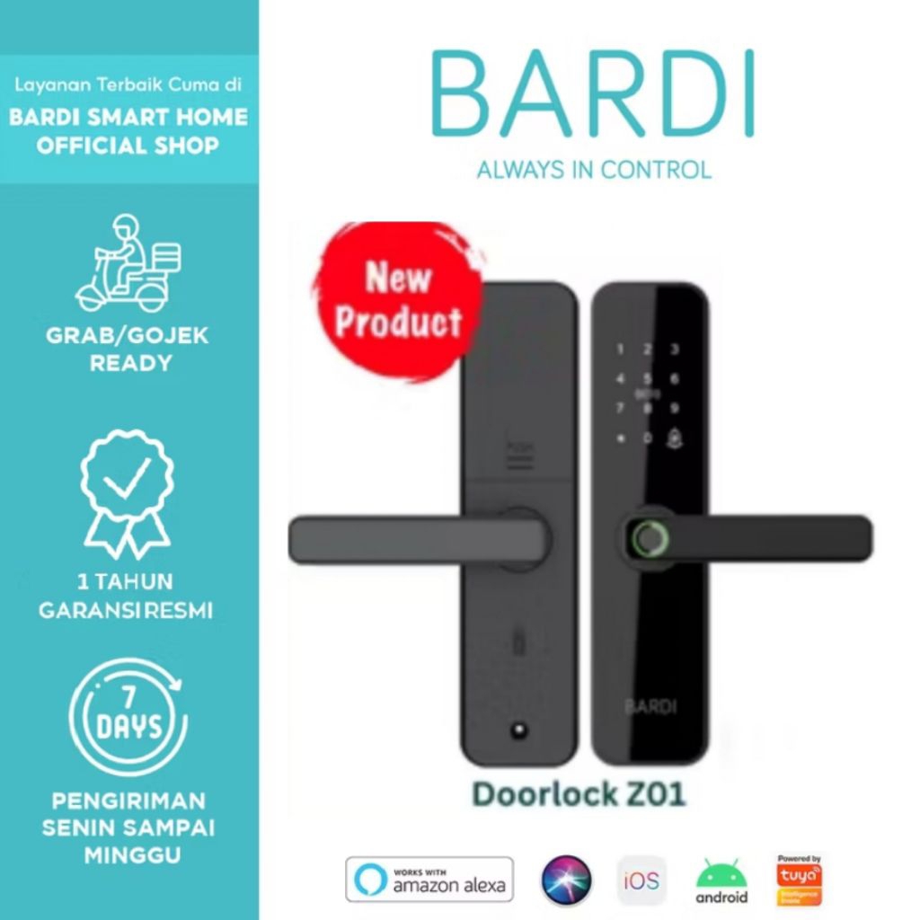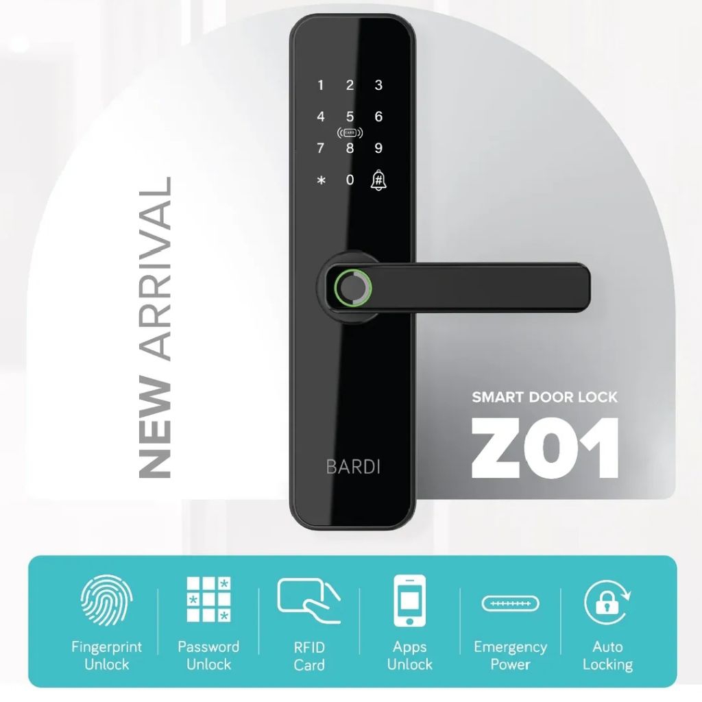 BARDI OFFICIAL Smart Home Door Lock Handle Z01 RFID, Fingerprint, WiFi, IP20 garansi resmi 1 tahun