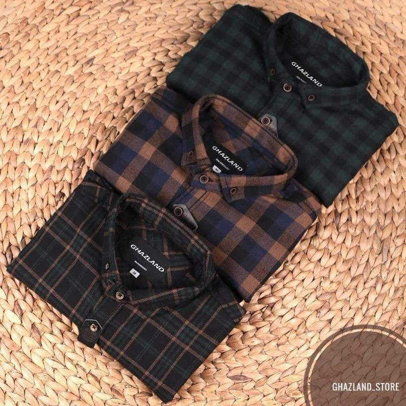 (BISA COD)KEMEJA FLANEL LENGAN PANJANG PREMIUM TERLARIS GHAZLAND PRIA WANITA UNISEX SLIMFIT