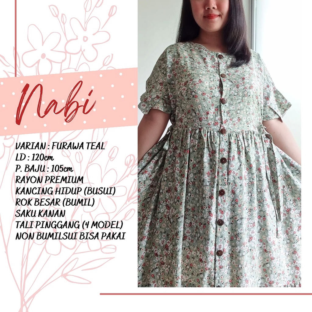 Terkini NABI | PART 3 | daster rayon bumil busui lengan pendek homedress kancing depan selutut dress hamil korea rempel baju menyusui