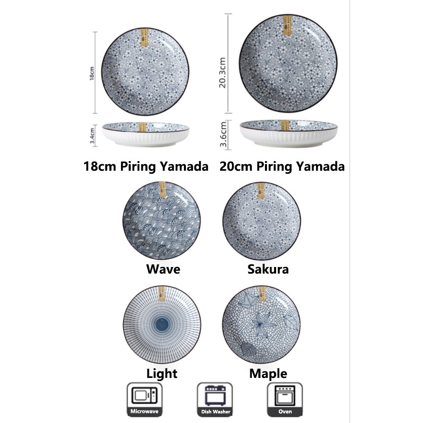 Piring Keramik Jepang Seri Yamada Classic Lukisan Tangan