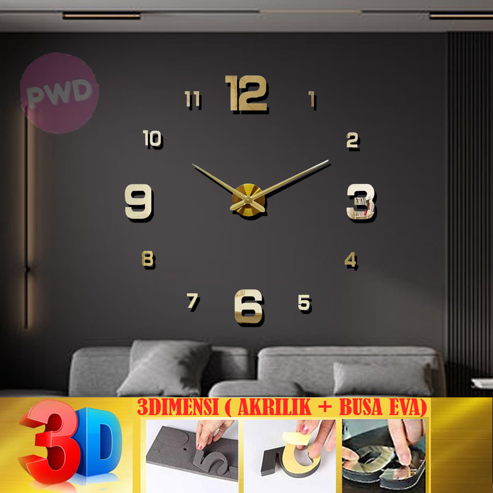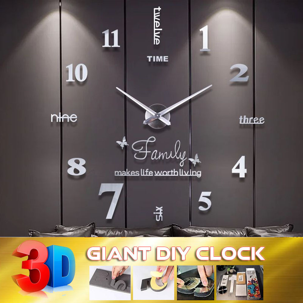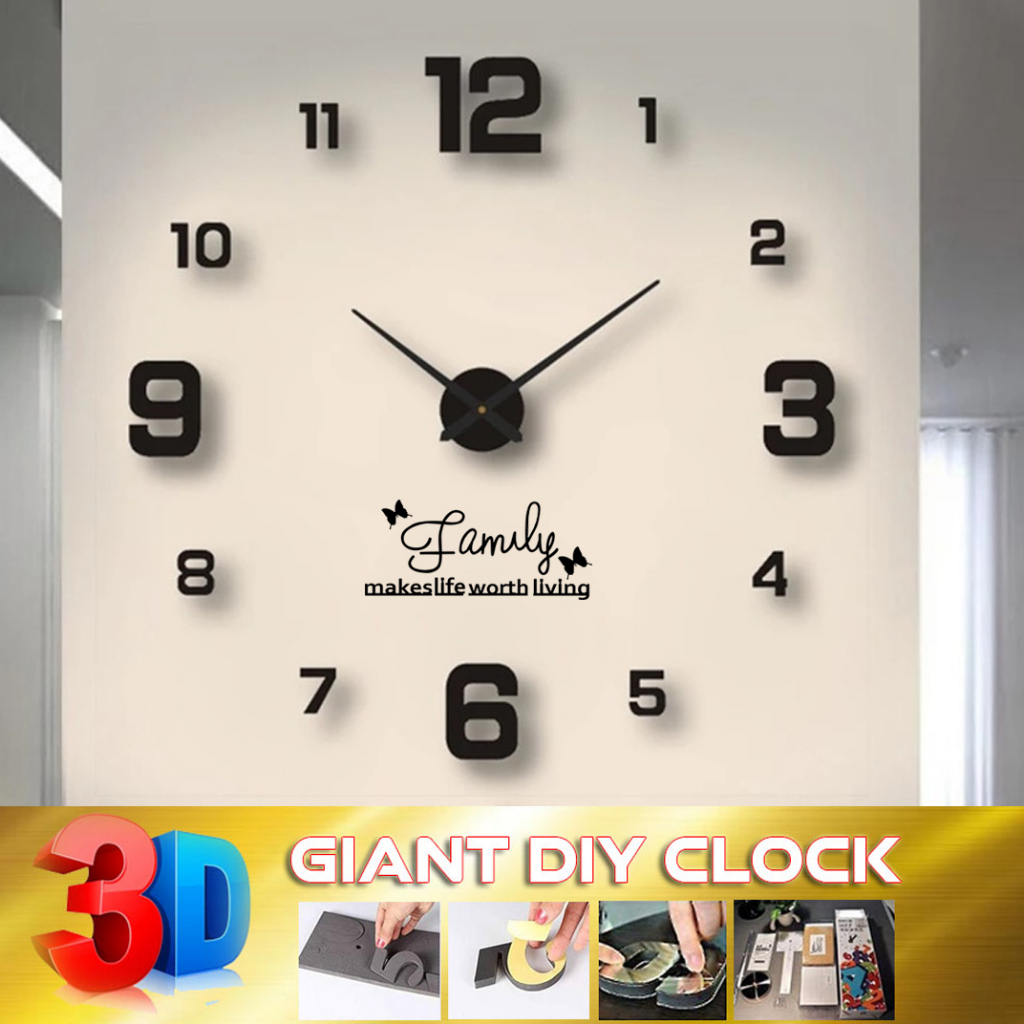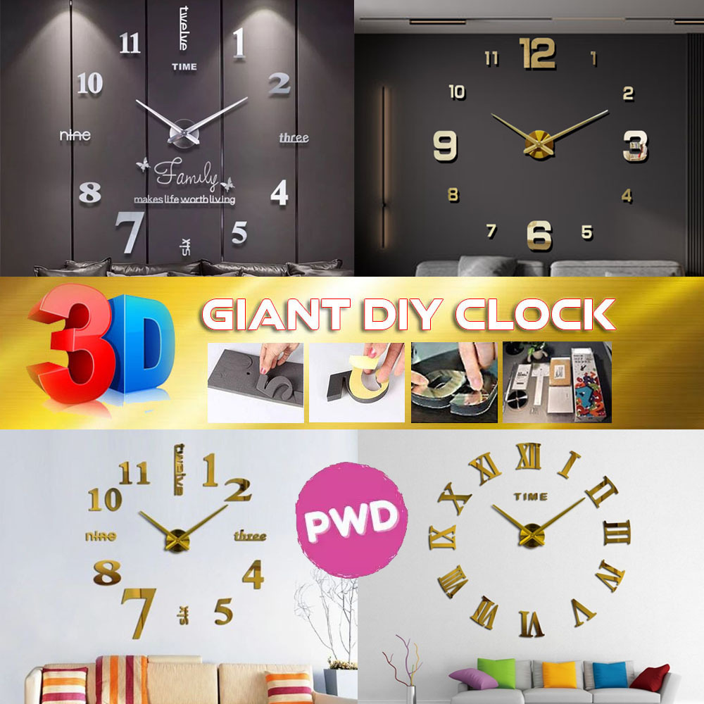 3D Jam Dinding Besar Raksasa Giant Wall Clock DIY 80-130cm Diameter (1KG=3pcs) 3 DIMENSI