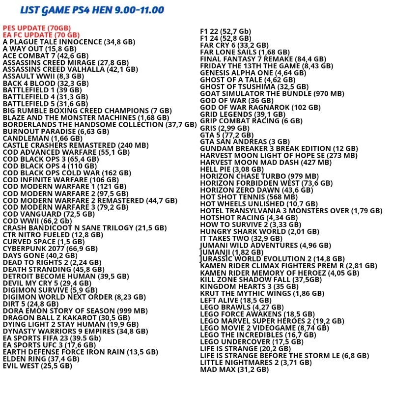 HARDISK GAME PS4 HEN PKG & PNP