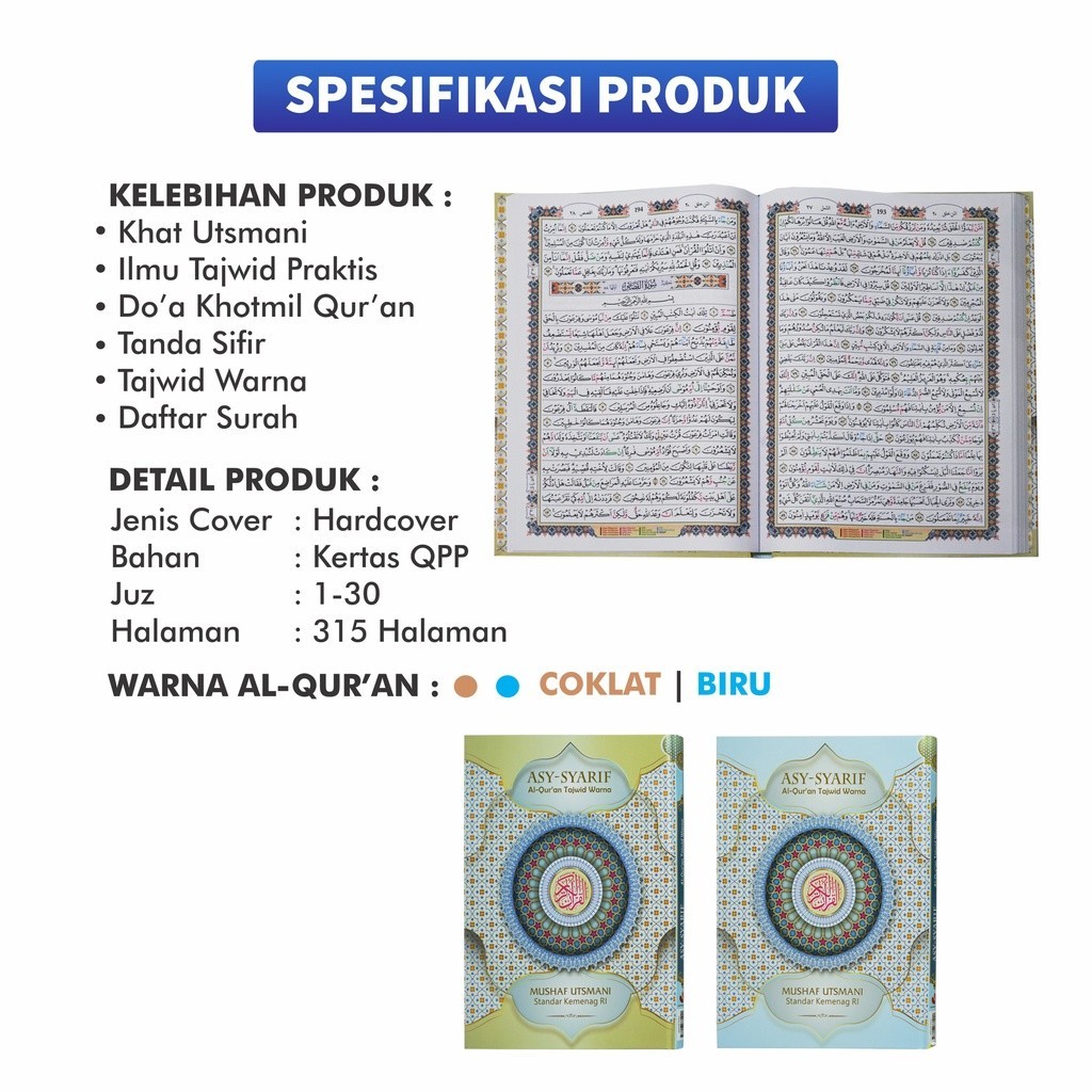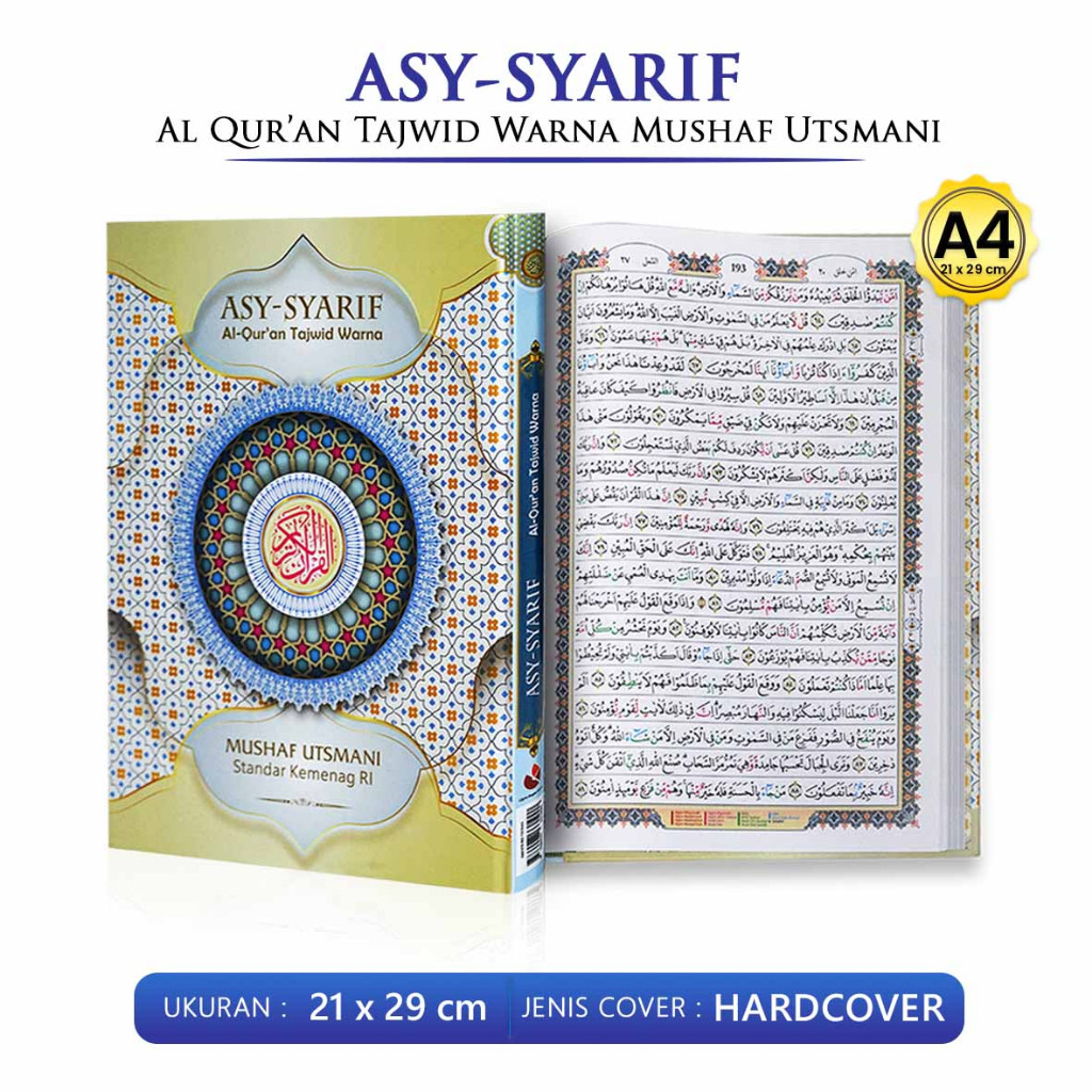 Al Quran Tajwid Warna ASY SYARIF Mushaf Utsmani Ukuran A4 Alquran Non Terjemah / Cipta Bagus Segara - CBS