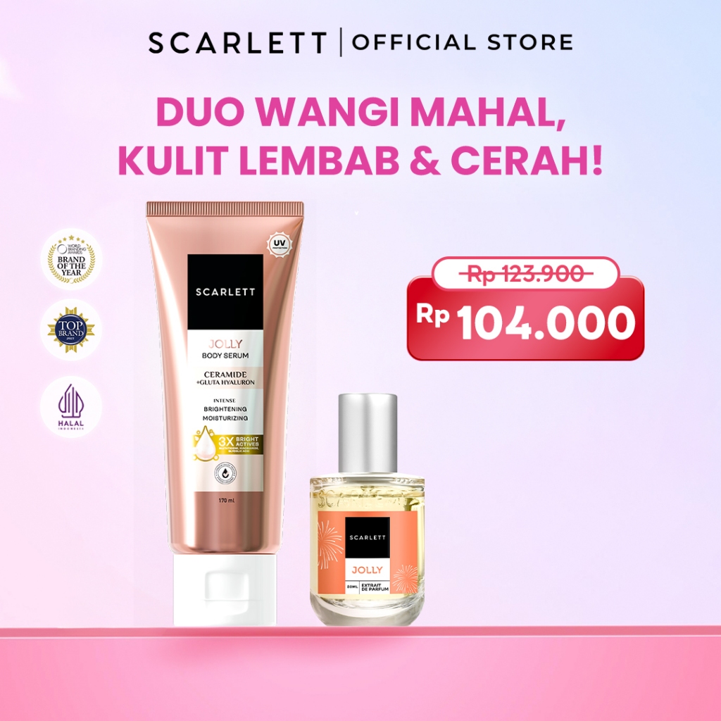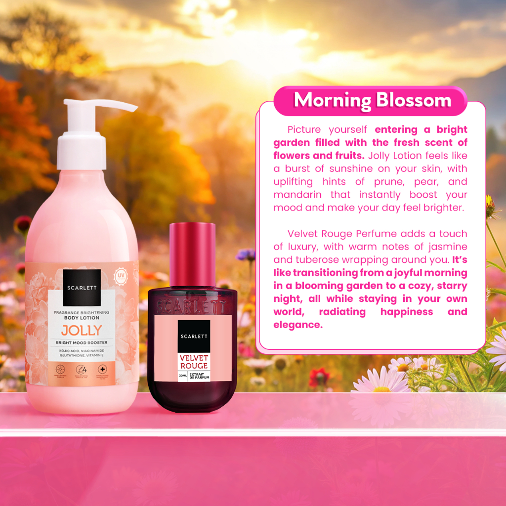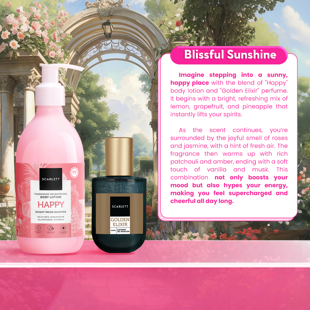 Scarlett Whitening SCENT-SATIONAL DUO - Eau De Parfum Velvet Rouge / Golden Elixir / Dreamy + Body Lotion Mood Booster Jolly / Happy / Charming