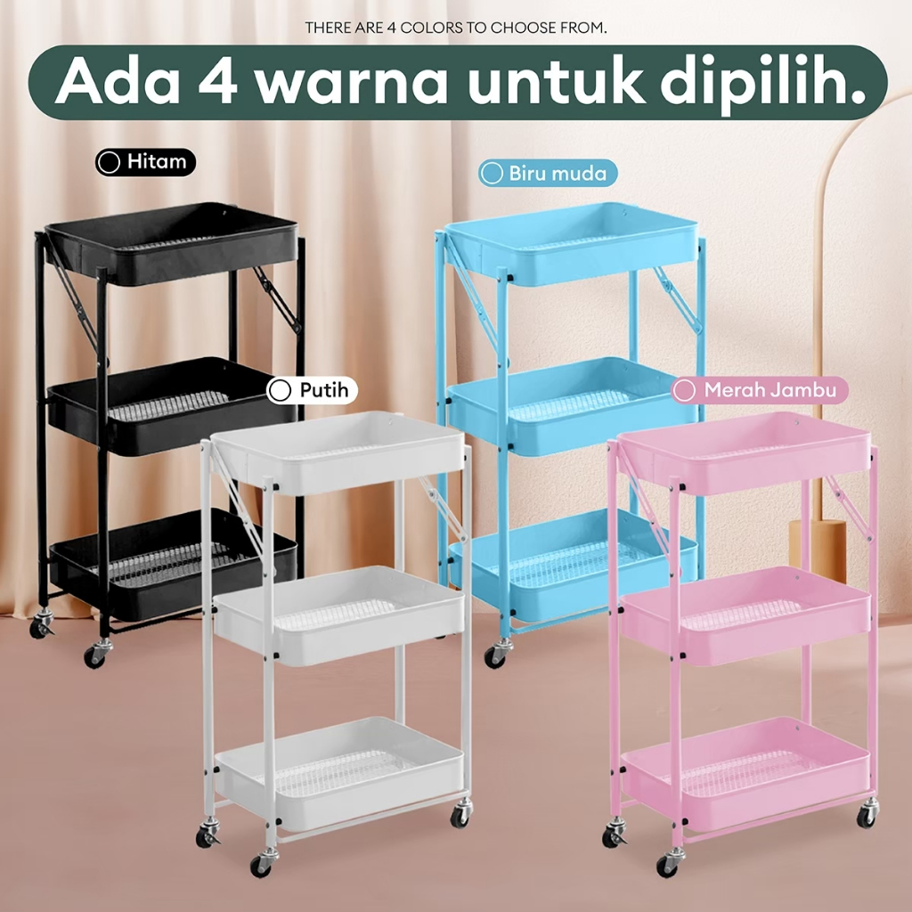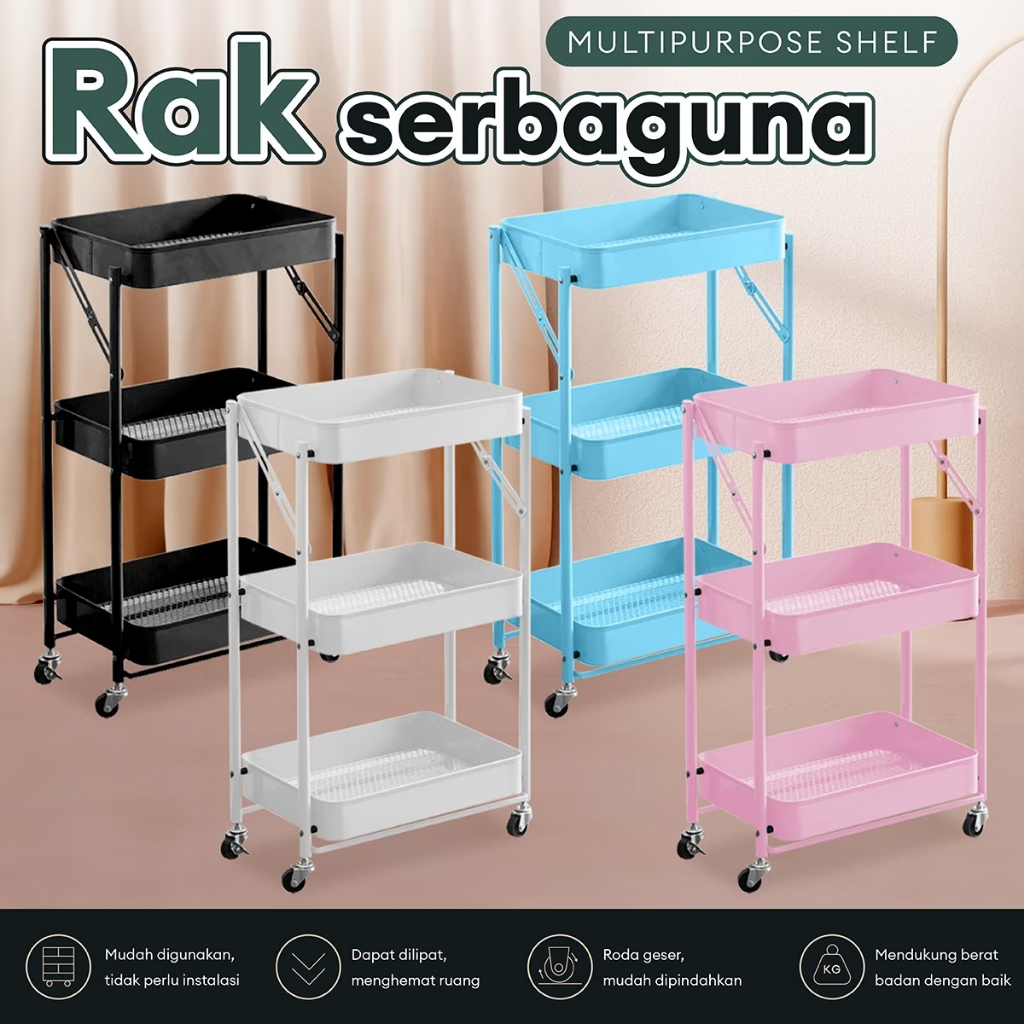 Rak Troli Serbaguna 3 Tingkat dengan Roda 360° – Besi Anti Karat, Kokoh & Multifungsi Serbaguna