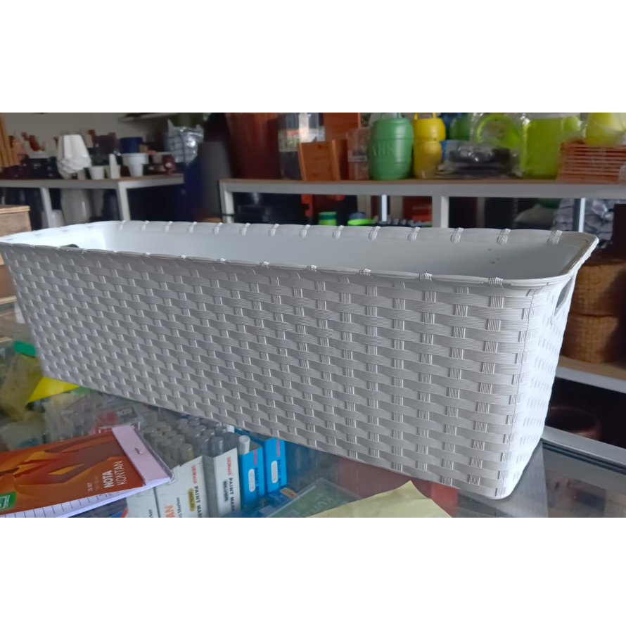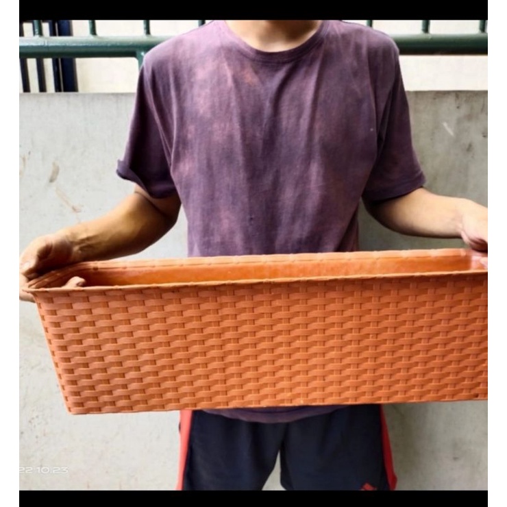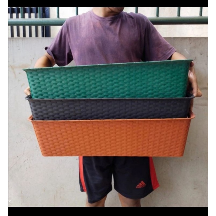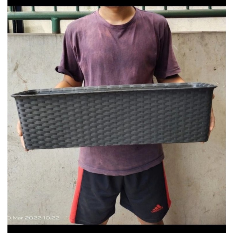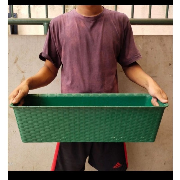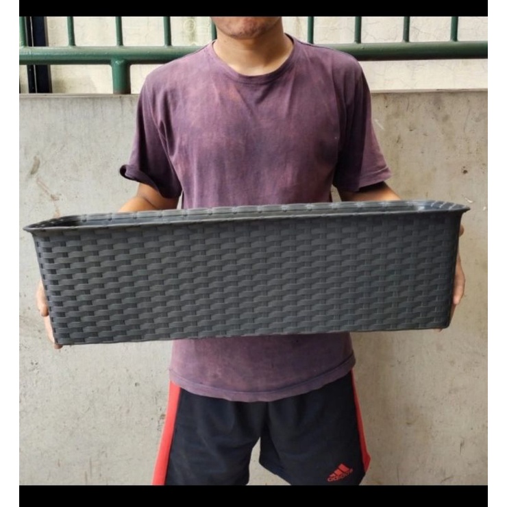 Pot rotan panjang 60 cm, pot bunga persegi panjang, pot motif warna
