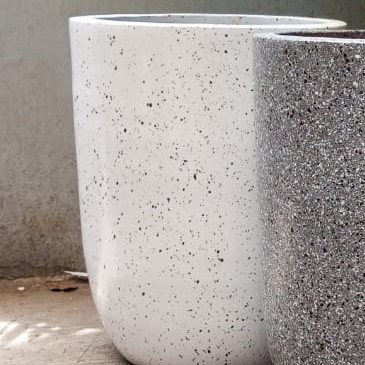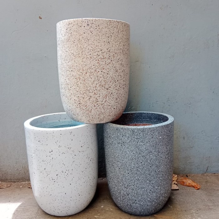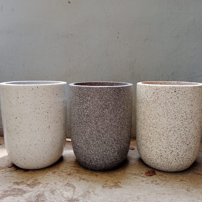 pot teraco, pot grabah tanah liat motif teraso, pot tabung, khusus instan