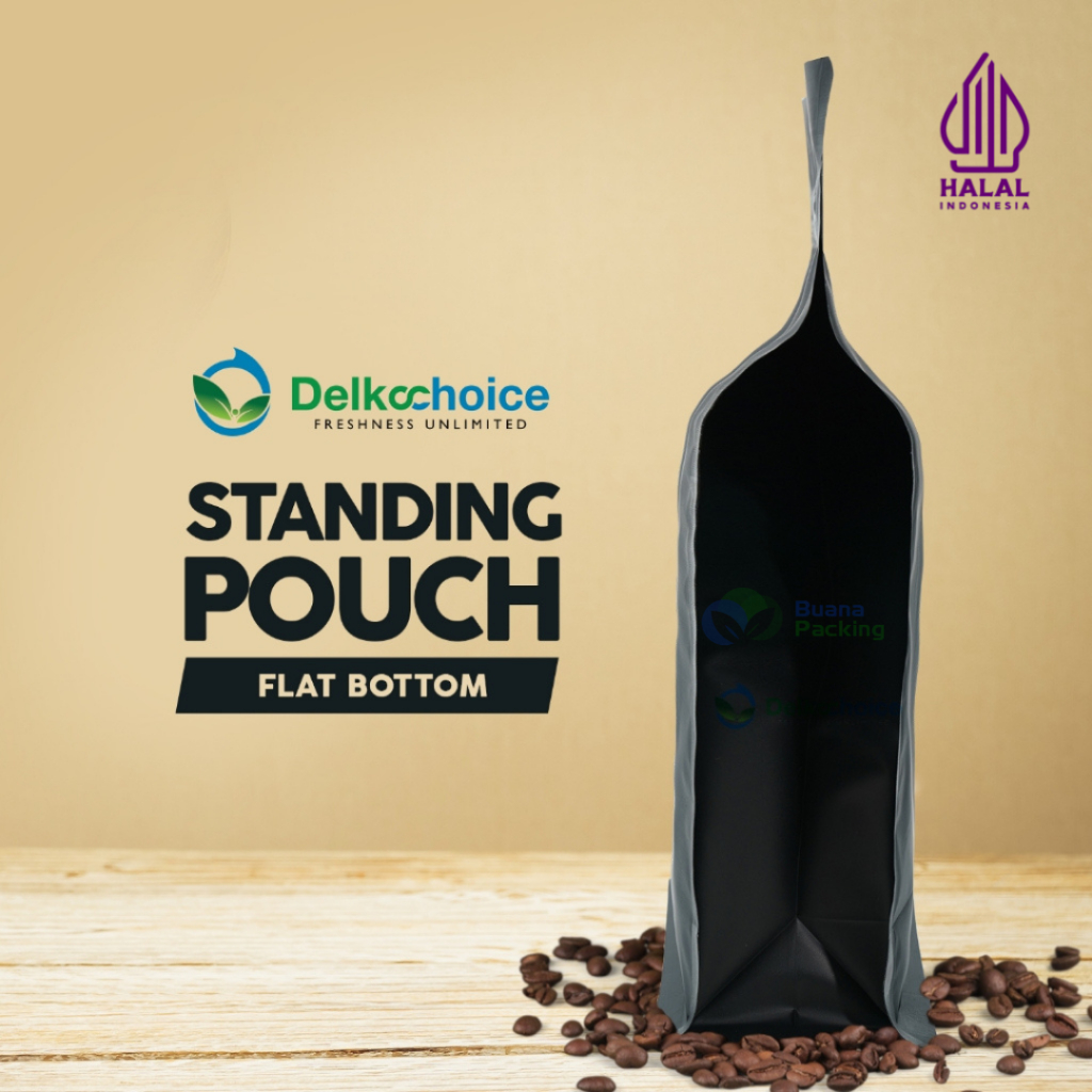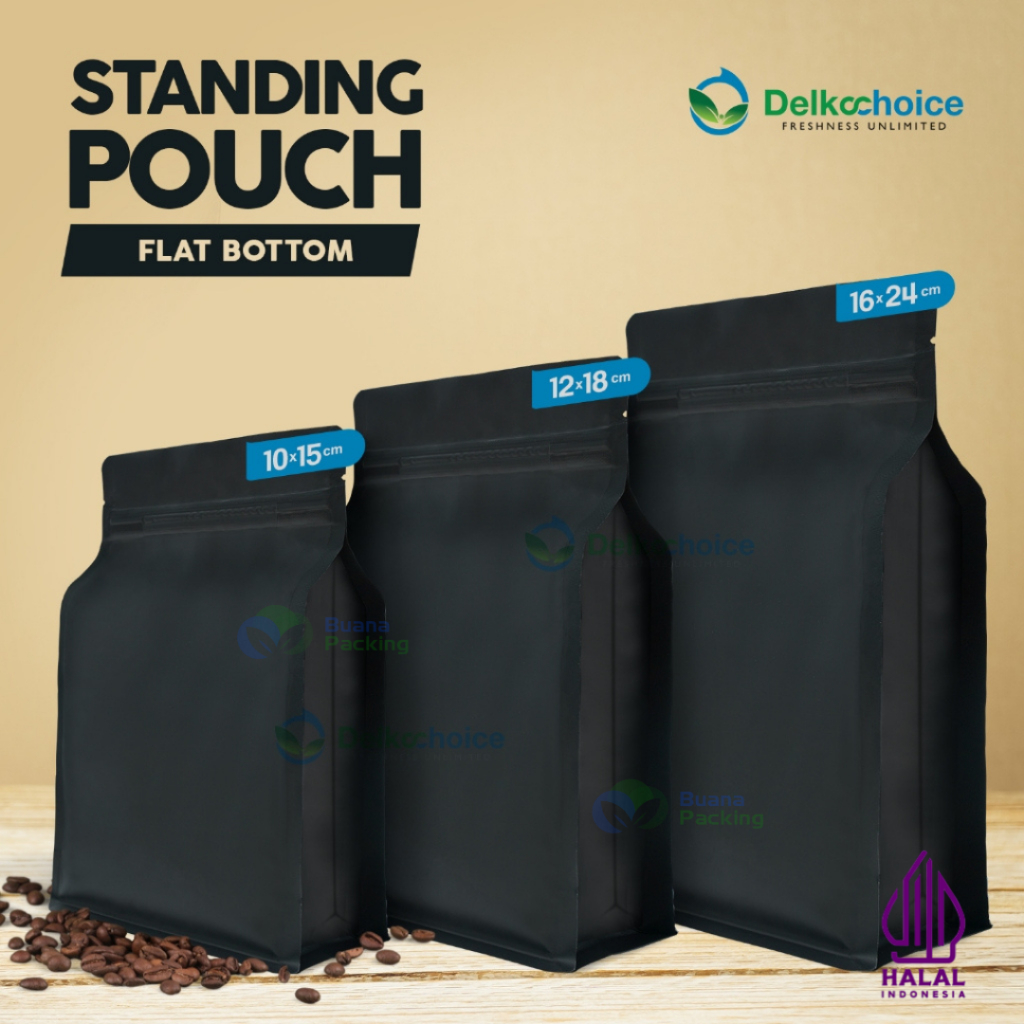 DELKOCHOICE STANDING POUCH FLAT BOTTOM NON VALVE BLACK 18x26