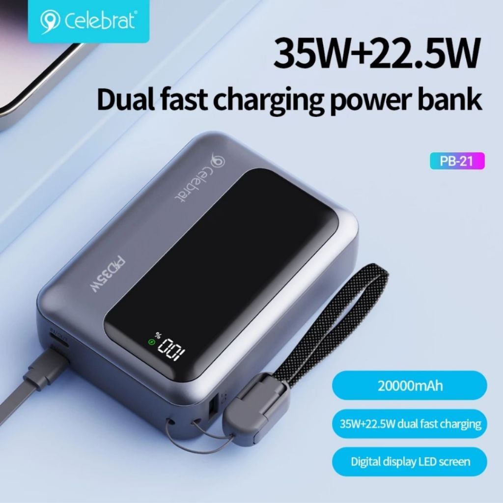 WM Power Bank Celebrat PB-21 Dual Output USB+Type-C Fast Charging 2 Port Sekaligus Praktis & Aman