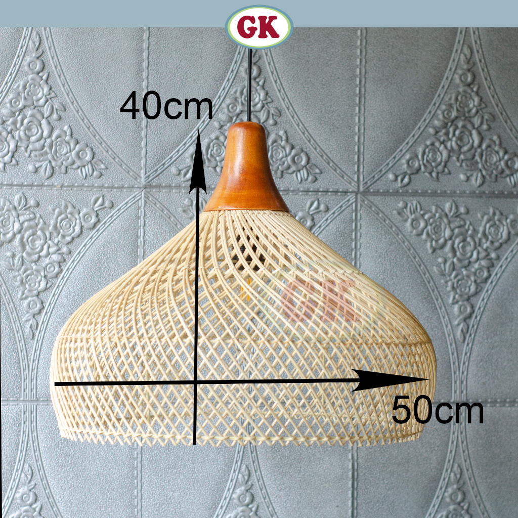 Kap Lampu Gantung Rotan KUBAH 13 D50 - Dekorasi Lampu Kayu Cafe