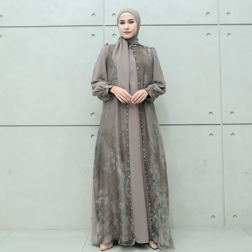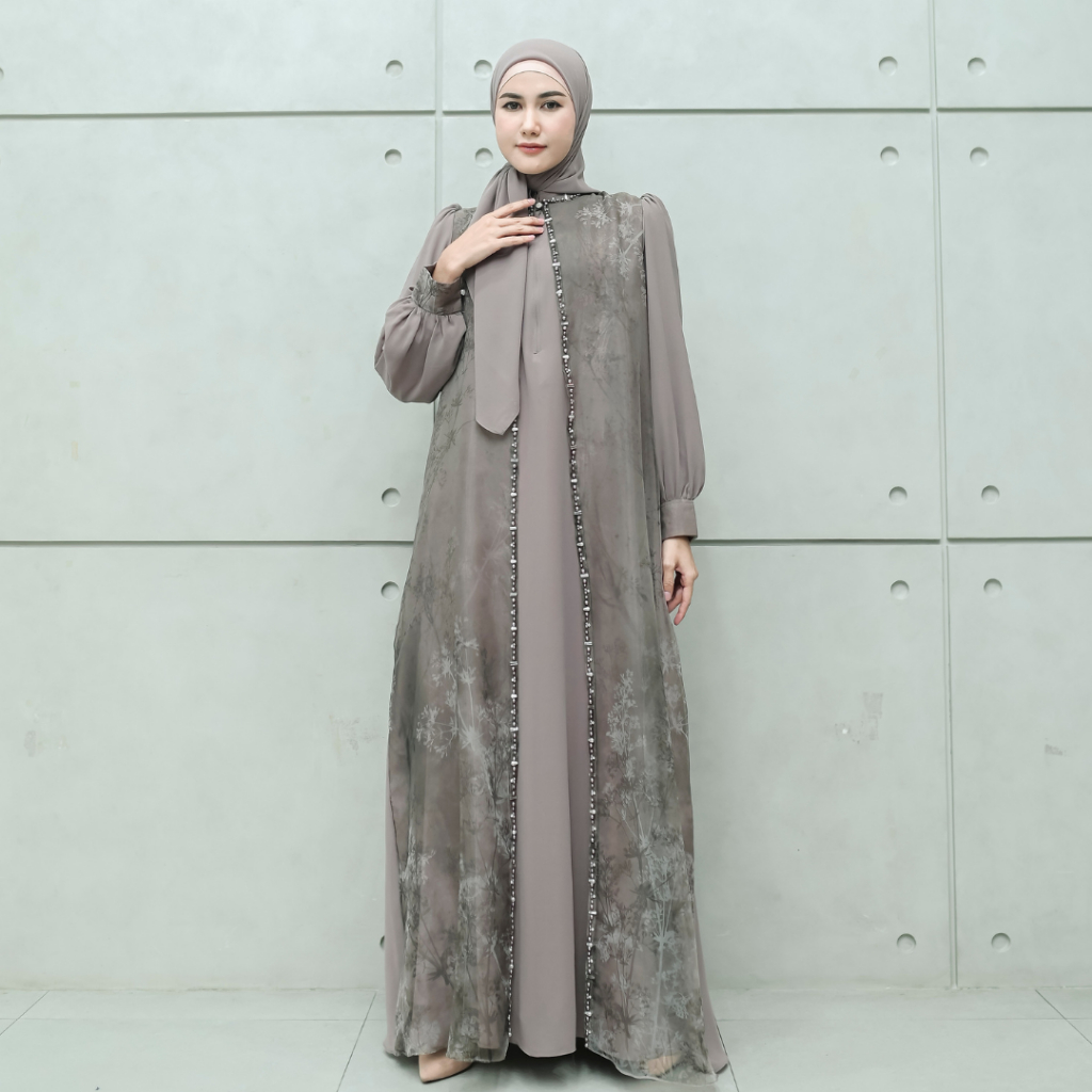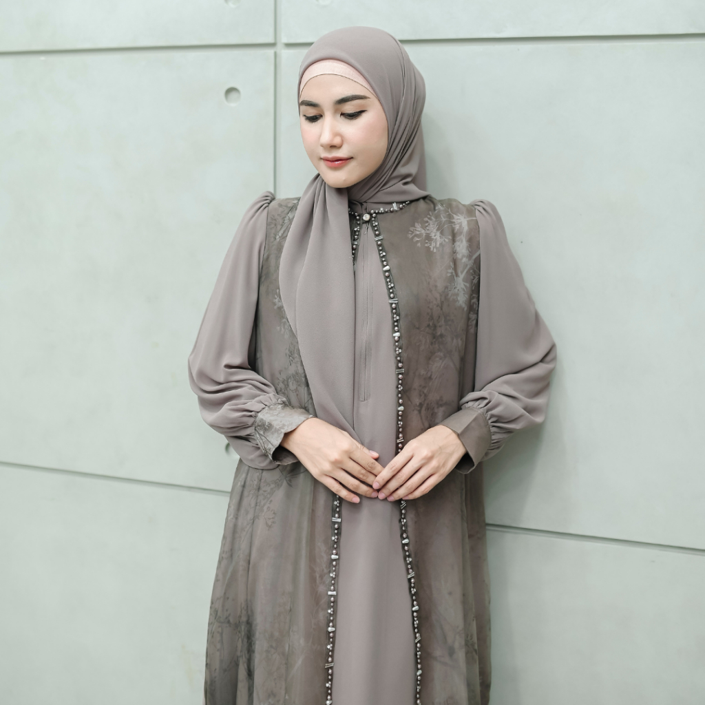 Aisyalina Id Alnaira Set Dress Series 2 Pashmina Segiempat Bahan Ceruty Dress Ceruty Armany Baby Doll Mix Organza Motif Gamis Elegan Mewah Wanita Tangan Balon