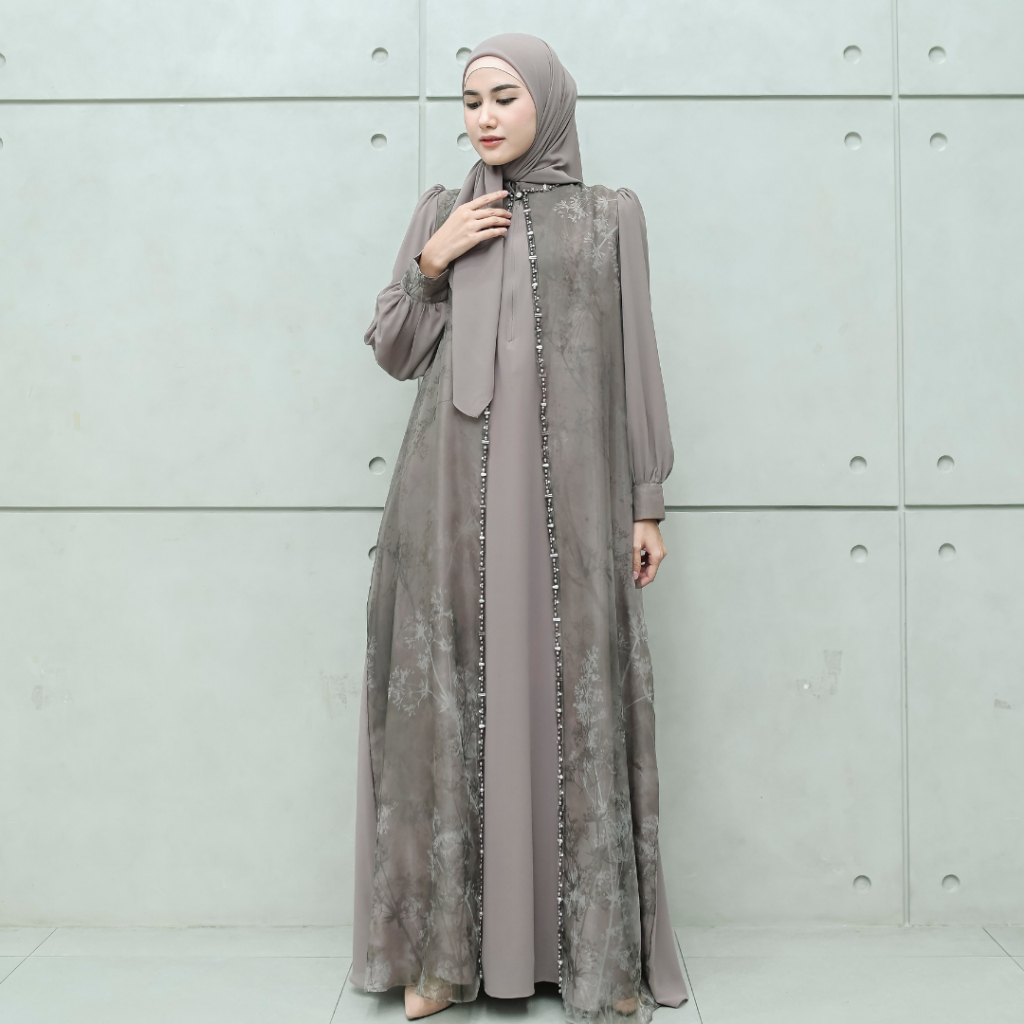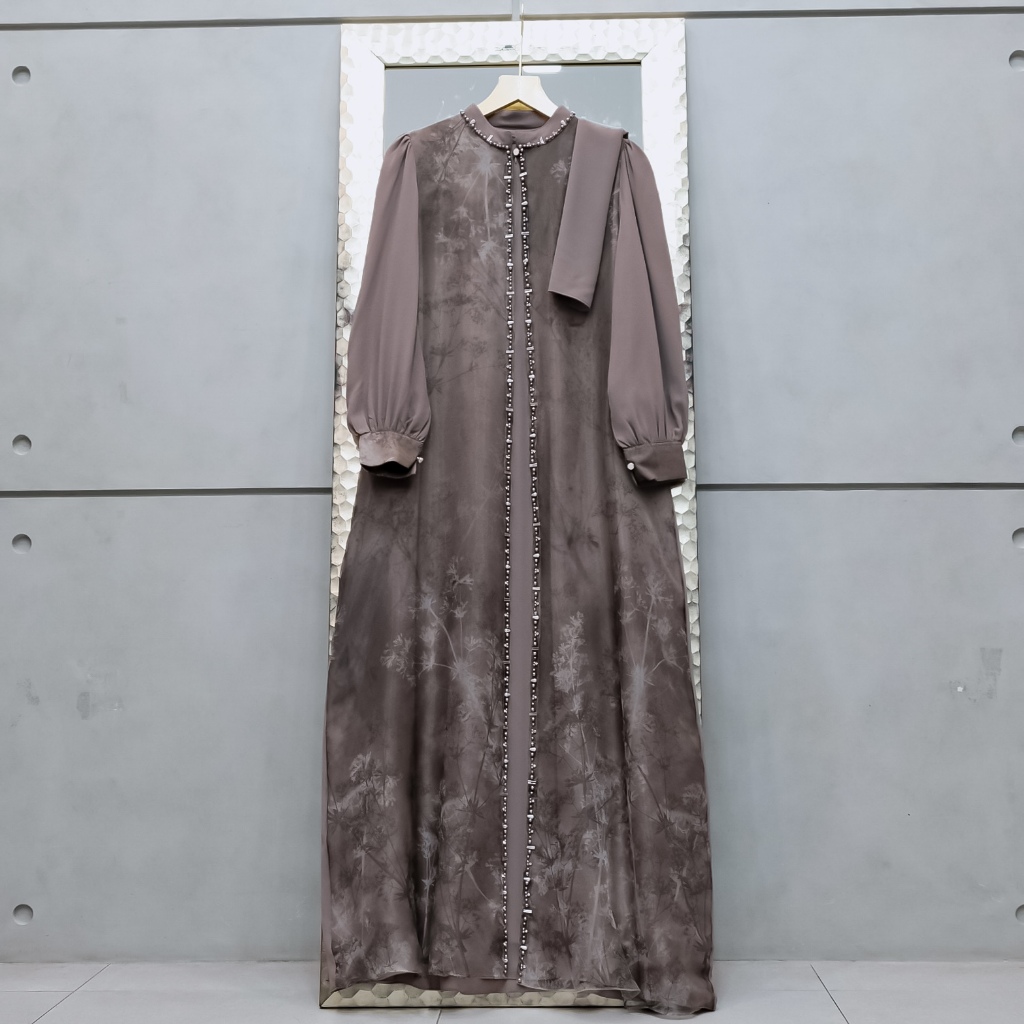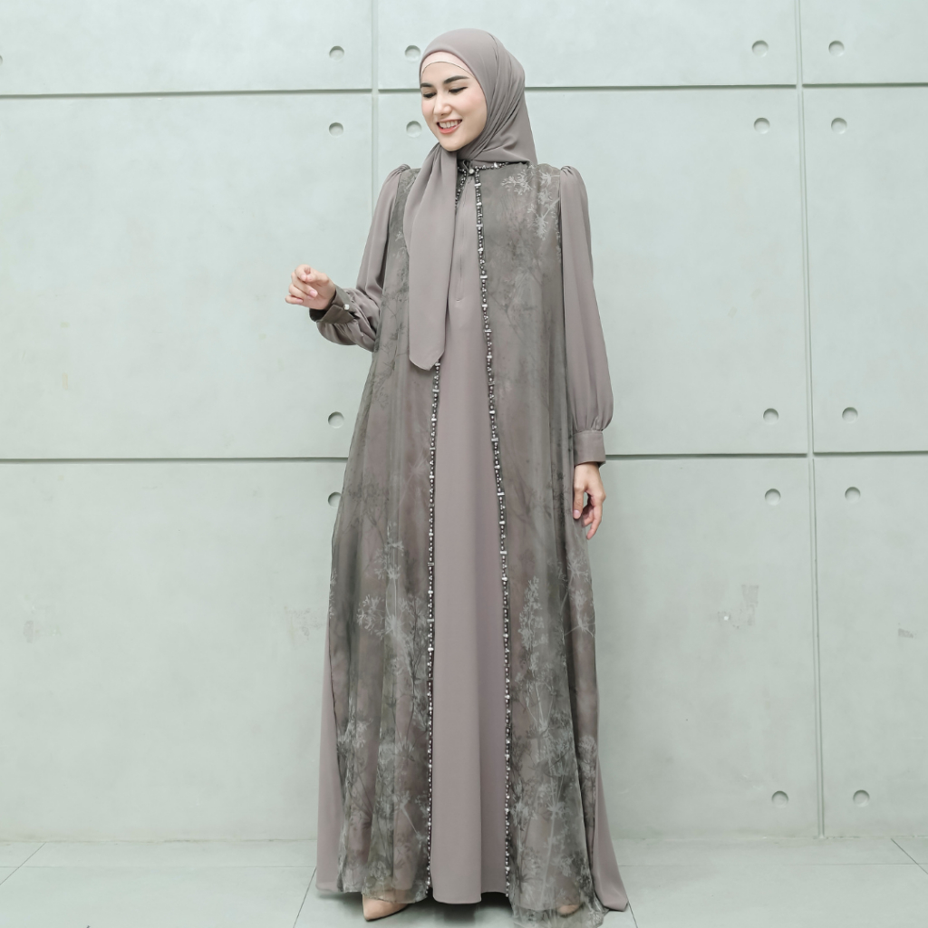 Aisyalina Id Alnaira Set Dress Series 2 Pashmina Segiempat Bahan Ceruty Dress Ceruty Armany Baby Doll Mix Organza Motif Gamis Elegan Mewah Wanita Tangan Balon