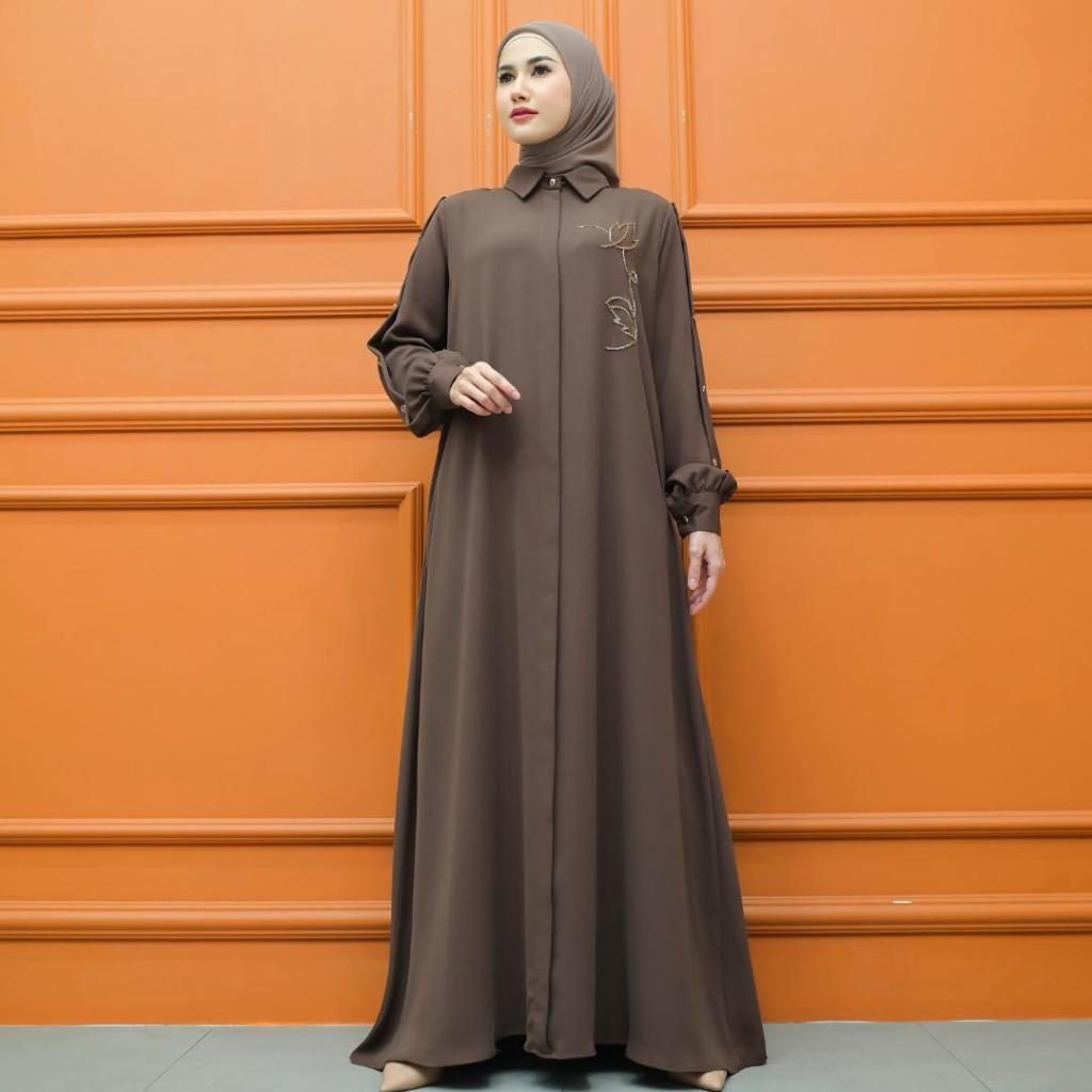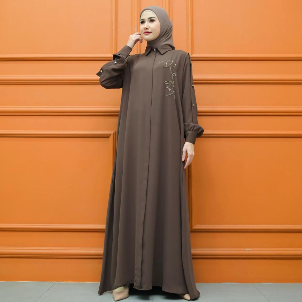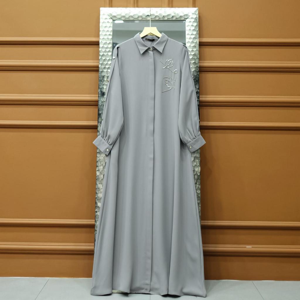 Aisyalina Id Almahyra Dress Series Tanpa Hijab Bahan Sutra Haniya Gamis Wanita Elegan Tangan Balon Berkerah