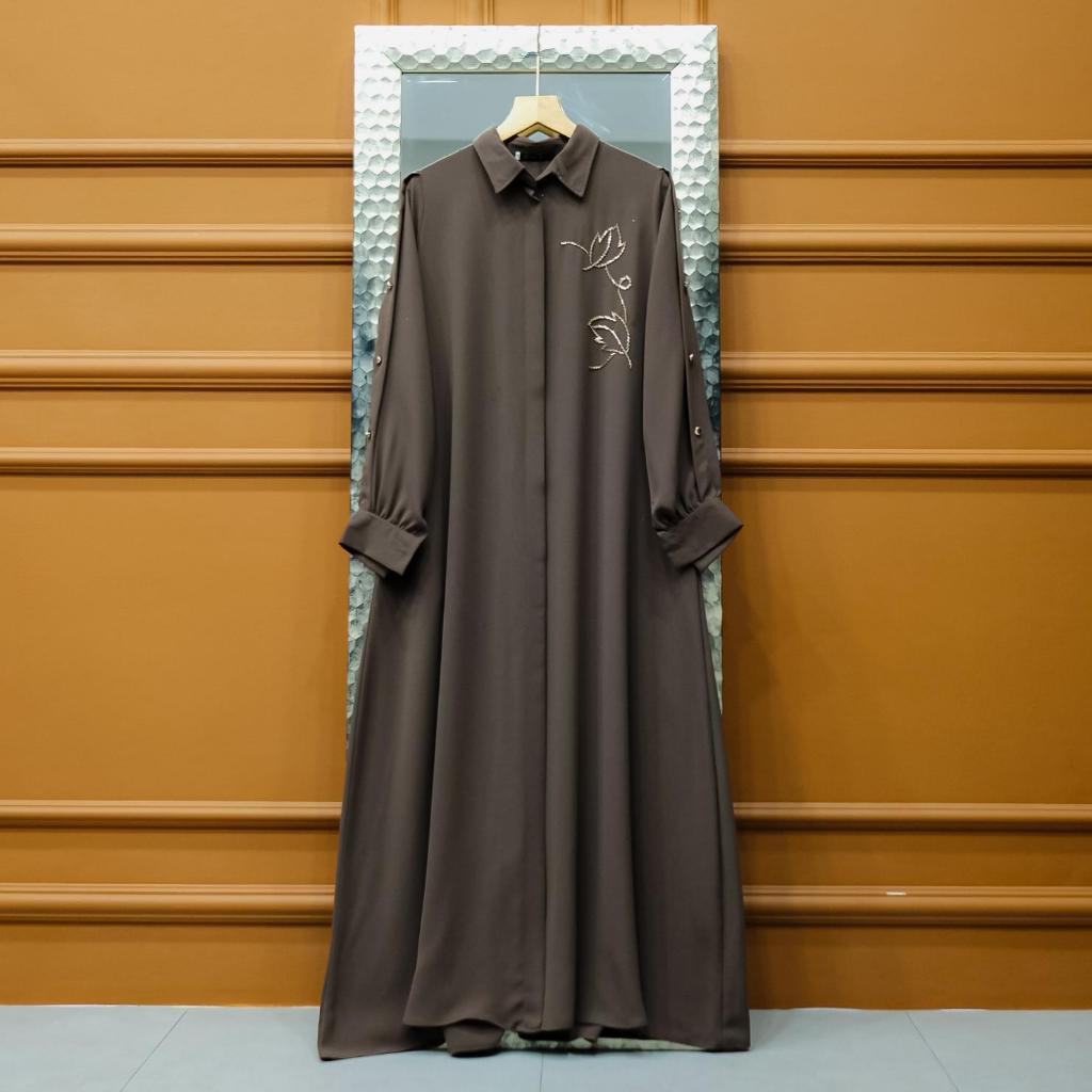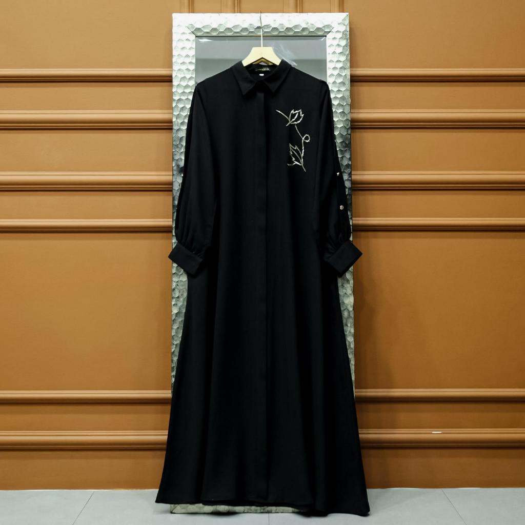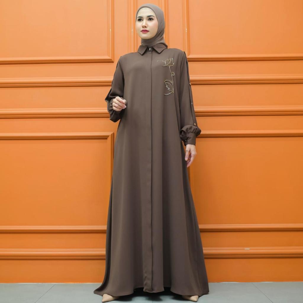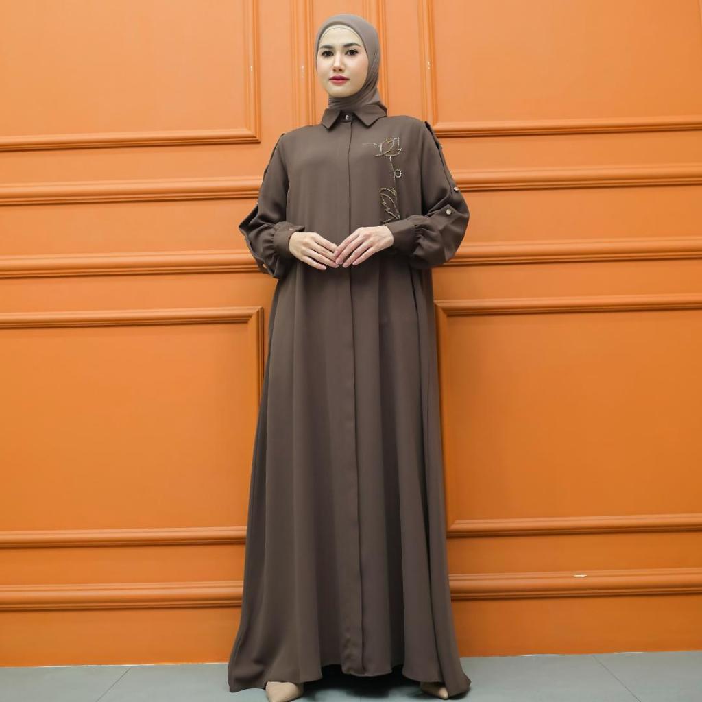 Aisyalina Id Almahyra Dress Series Tanpa Hijab Bahan Sutra Haniya Gamis Wanita Elegan Tangan Balon Berkerah