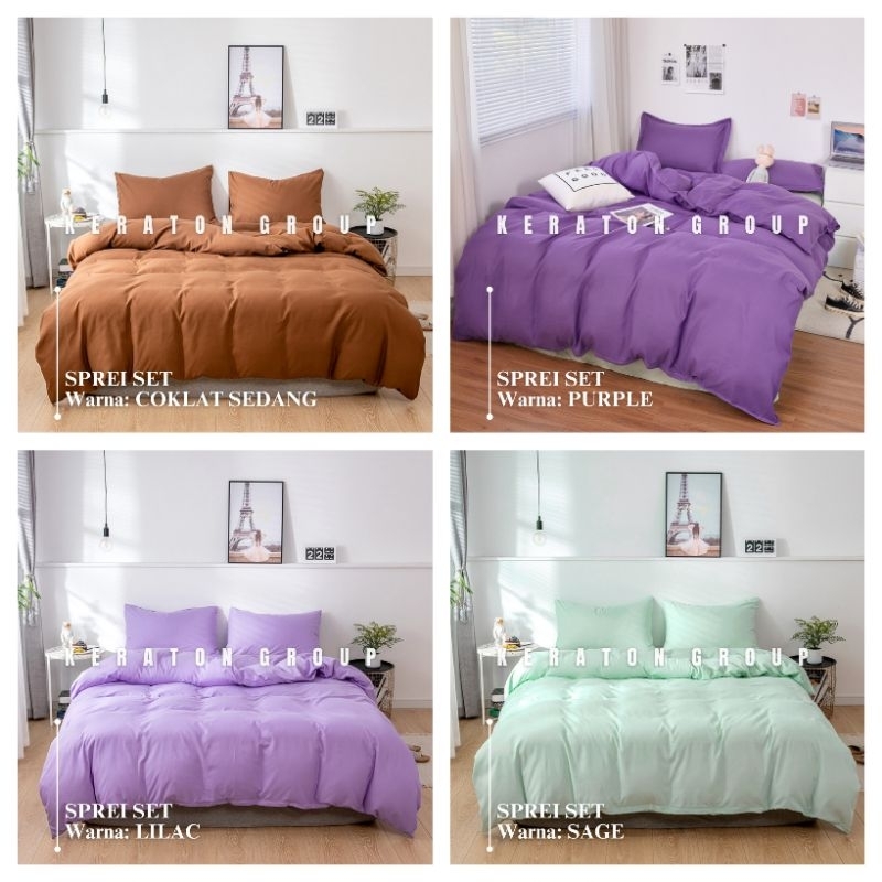 KERATON Sprei Set Polos Anti Geser KATUN CVC PREMIUM Produk HANDMADE - Bisa Custom Size