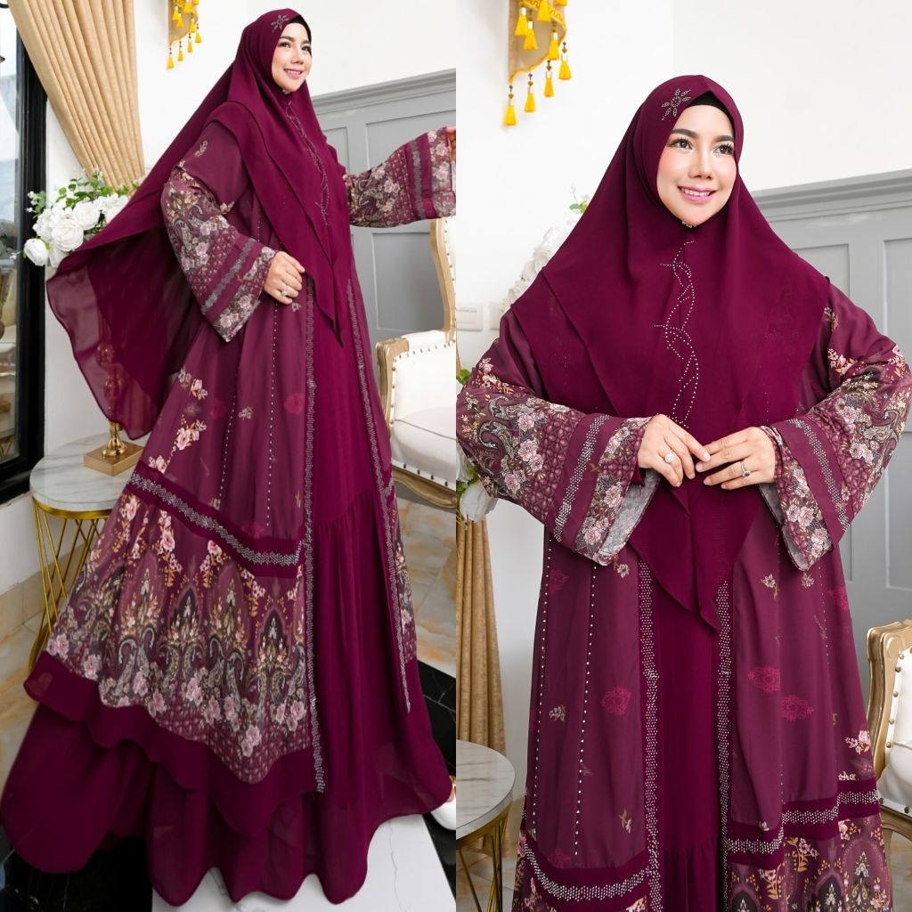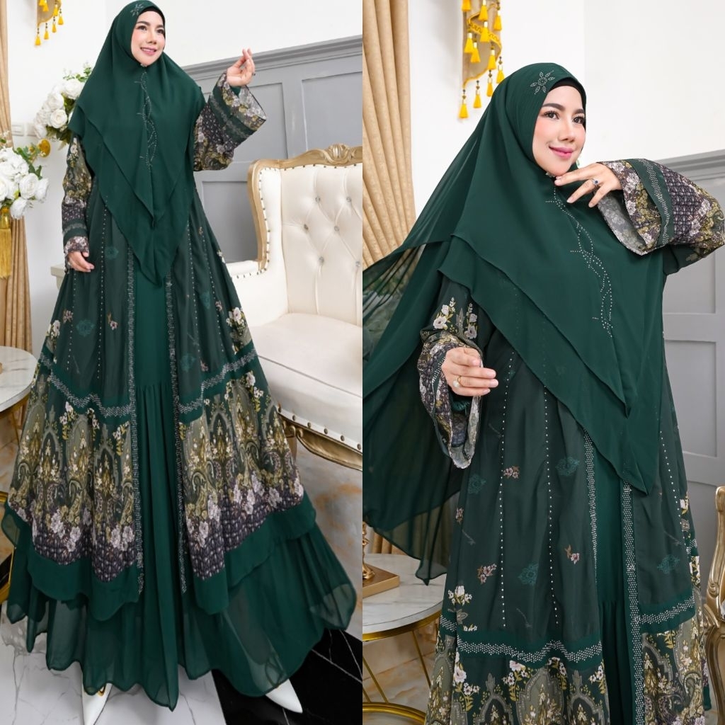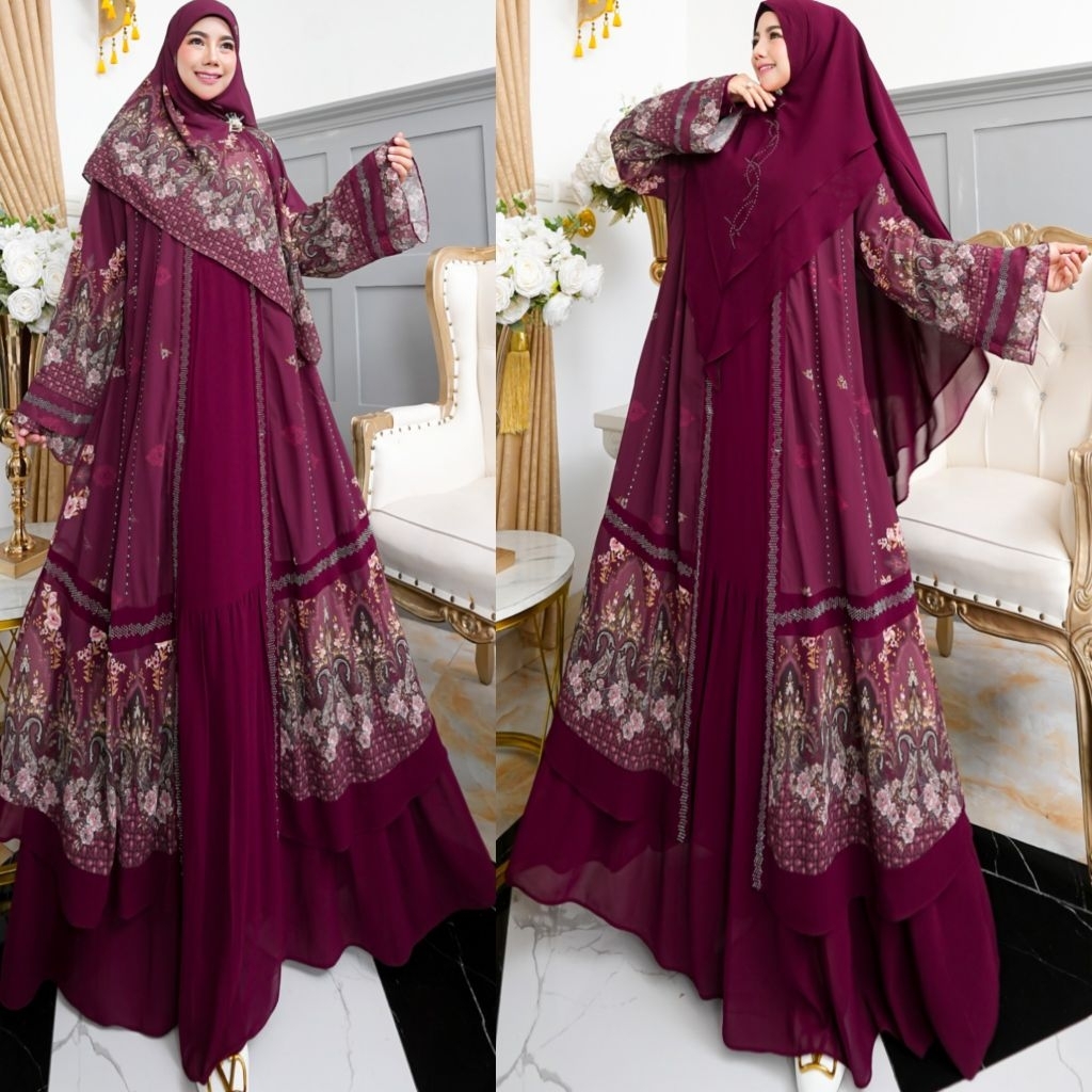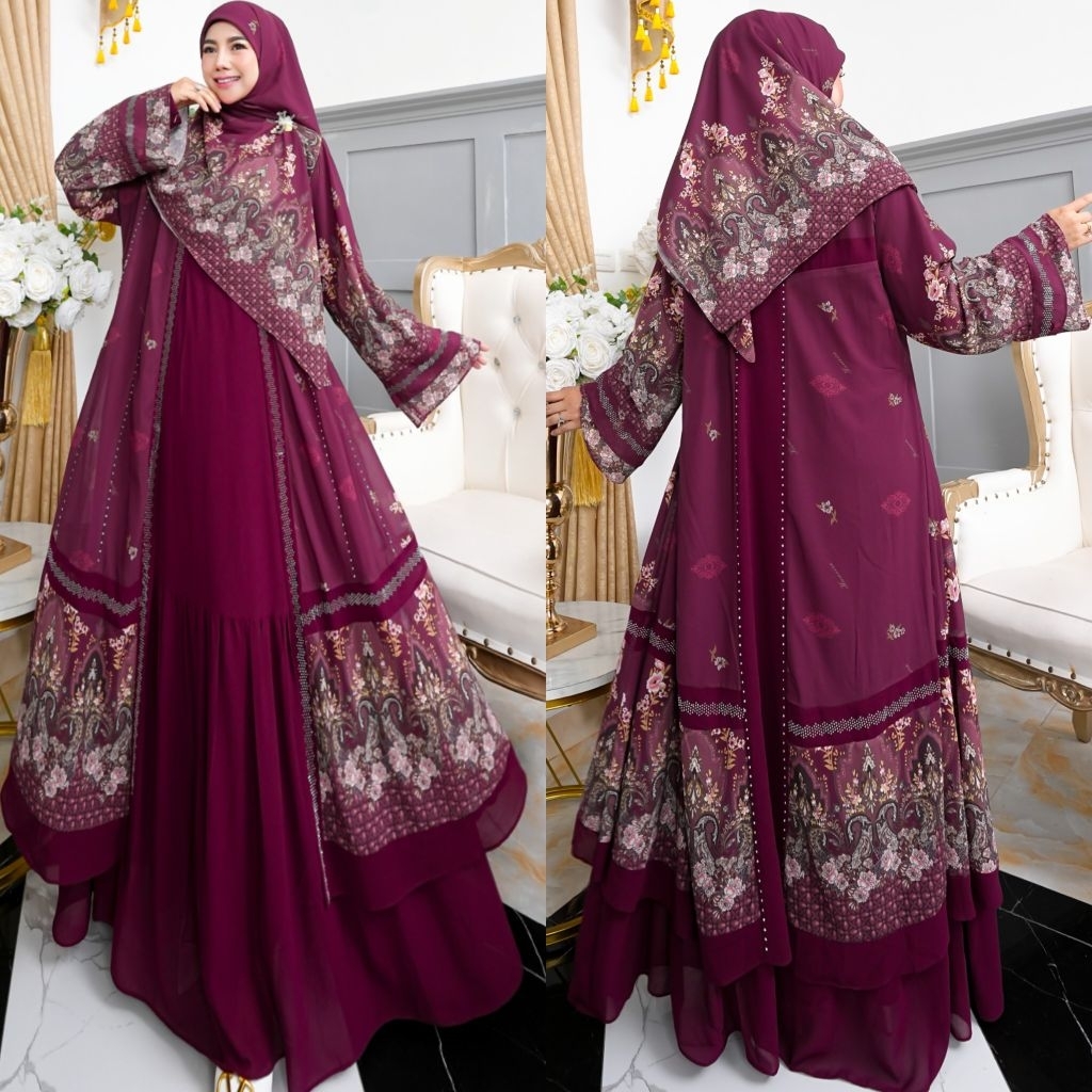 NEW KHAZANAH SERIES BY HUMAIRA SYARI GAMIS CERUTY PRINTING PREMIUM SEMI OUTER MENYATU SET JILBAB SCARF KHIMAR