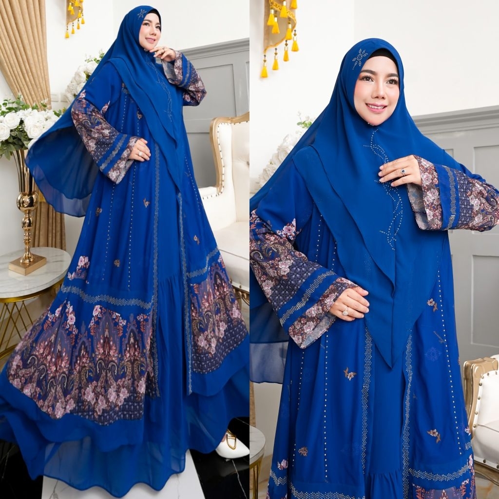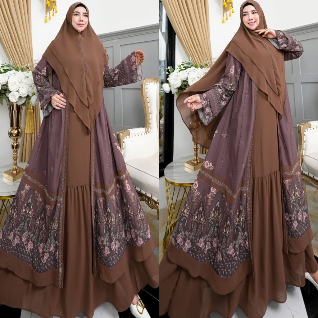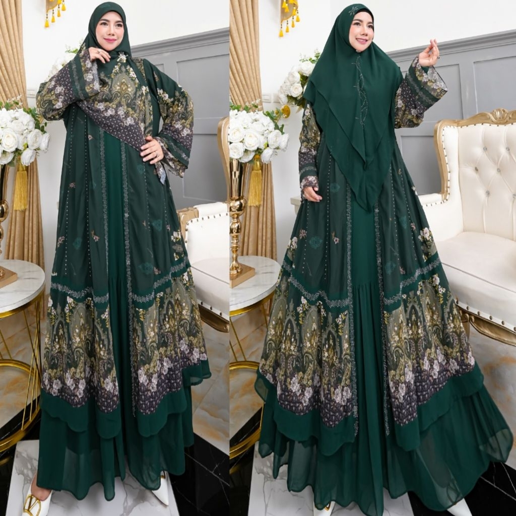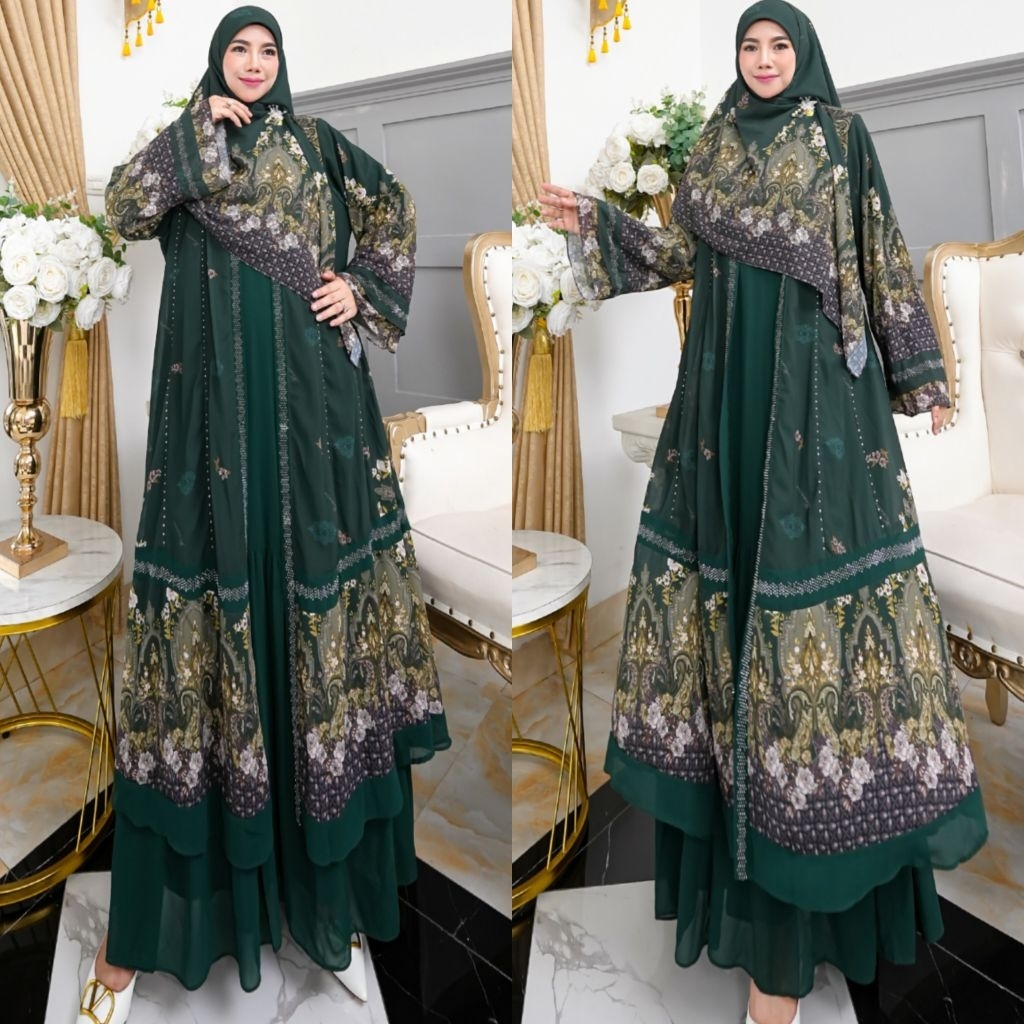 NEW KHAZANAH SERIES BY HUMAIRA SYARI GAMIS CERUTY PRINTING PREMIUM SEMI OUTER MENYATU SET JILBAB SCARF KHIMAR