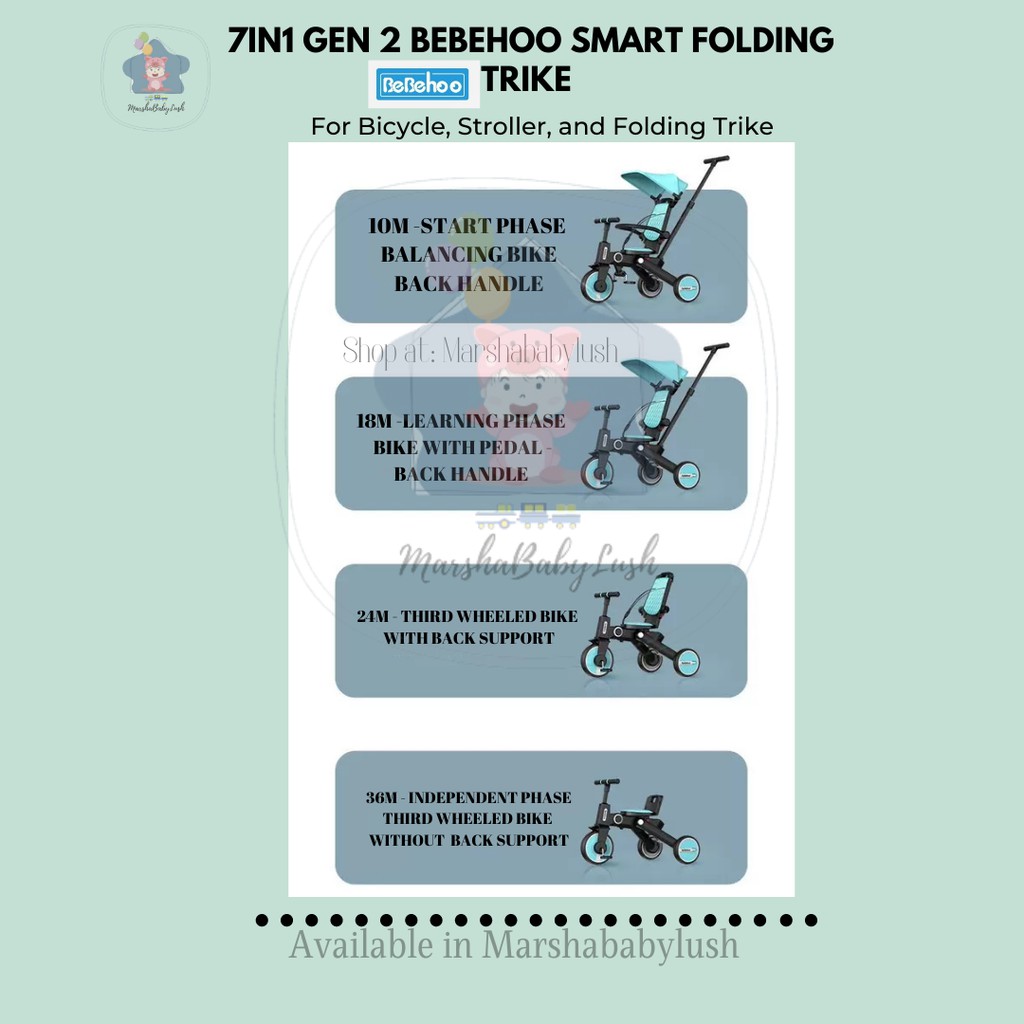 (READYSTOCK) BEBEHOO GEN 2 7in1 SMART FOLDING TRIKE / STROLLER LIPAT BAYI MULTIFUNGSI / SEPEDA ANAK