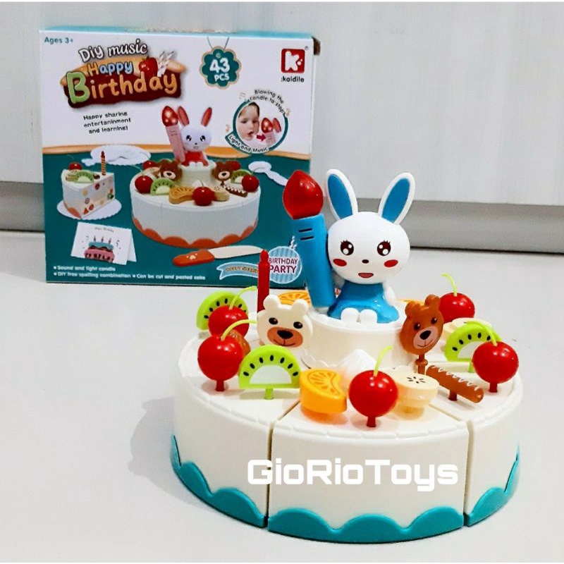 Mainan DIY Music Happy Birthday Cake Kue Ulang Tahun Anak / Mainan Kue Tart Potong Lilin Tiup Musik
