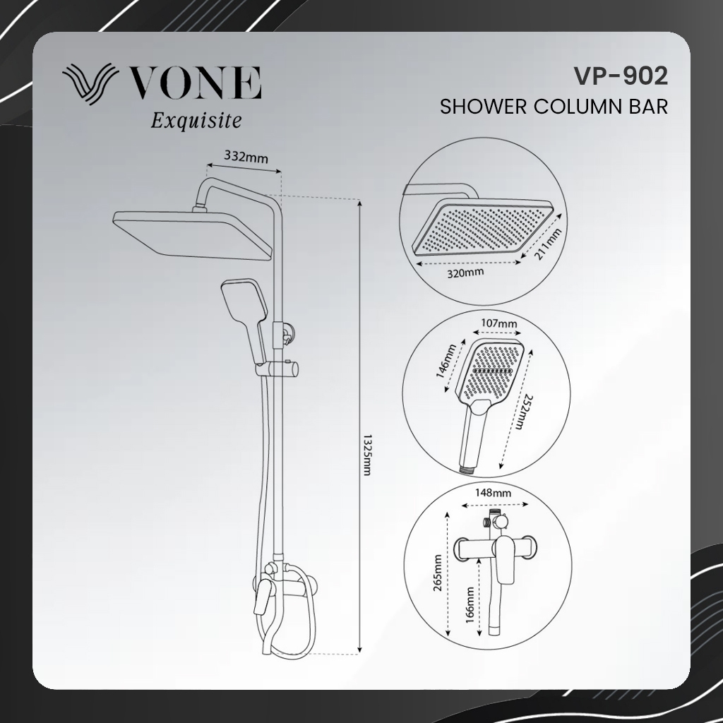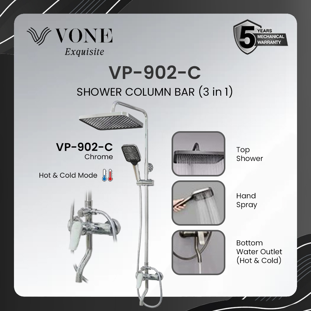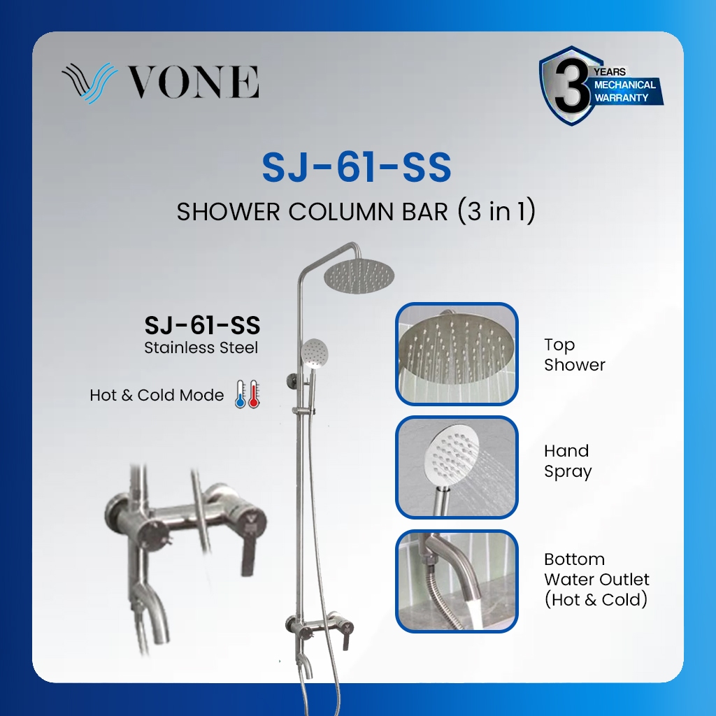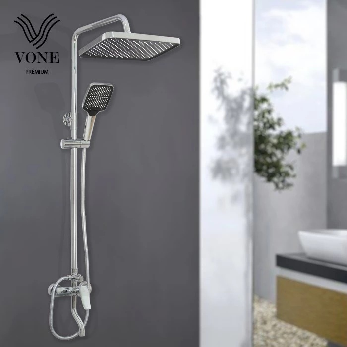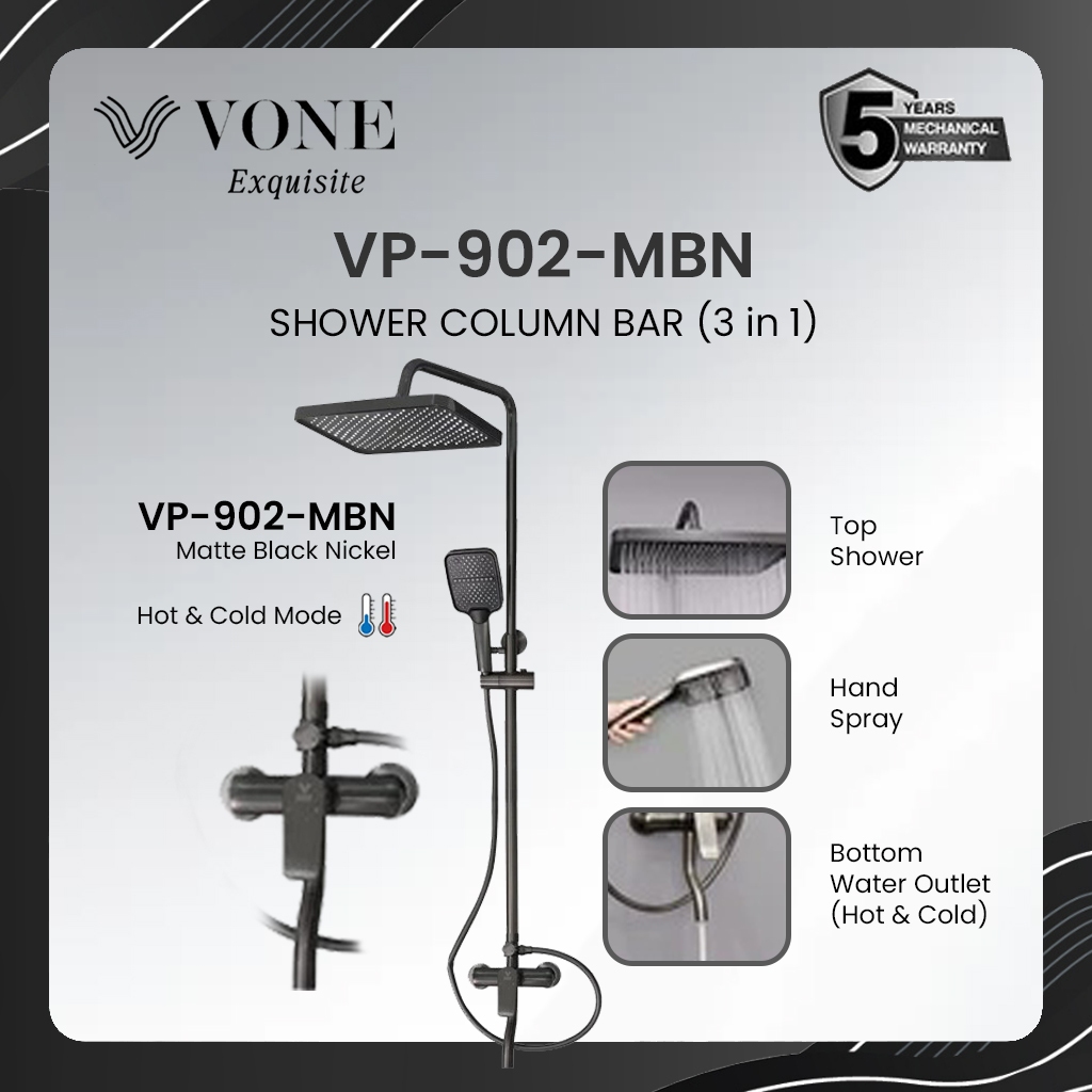 VONE Shower Set Kamar Mandi 3 in 1 Shower Tiang Komplit Kran Panas Dingin Stainless Chrome Krom Hitam Black SUS 304