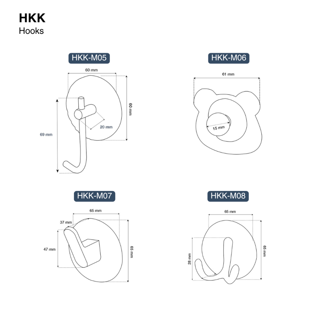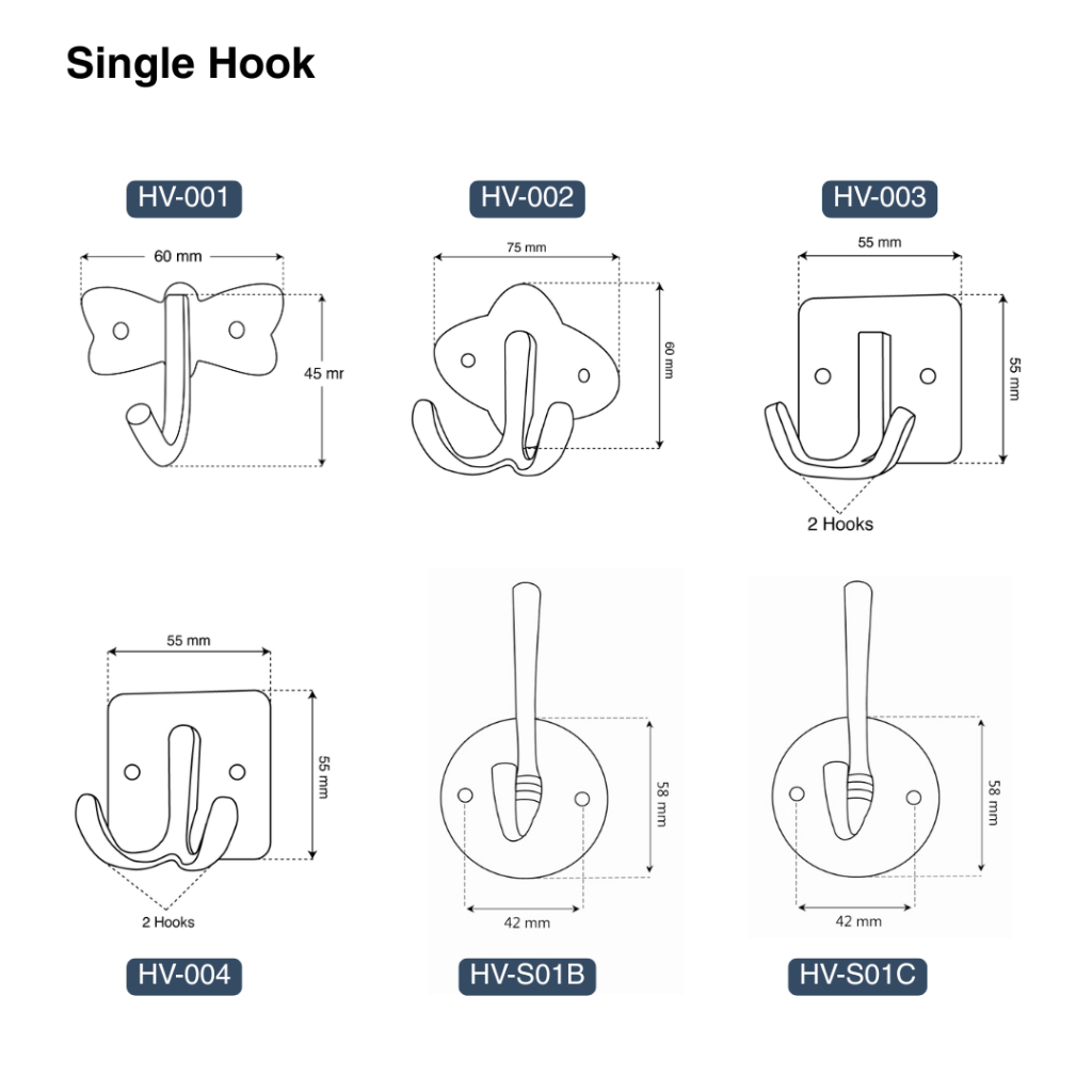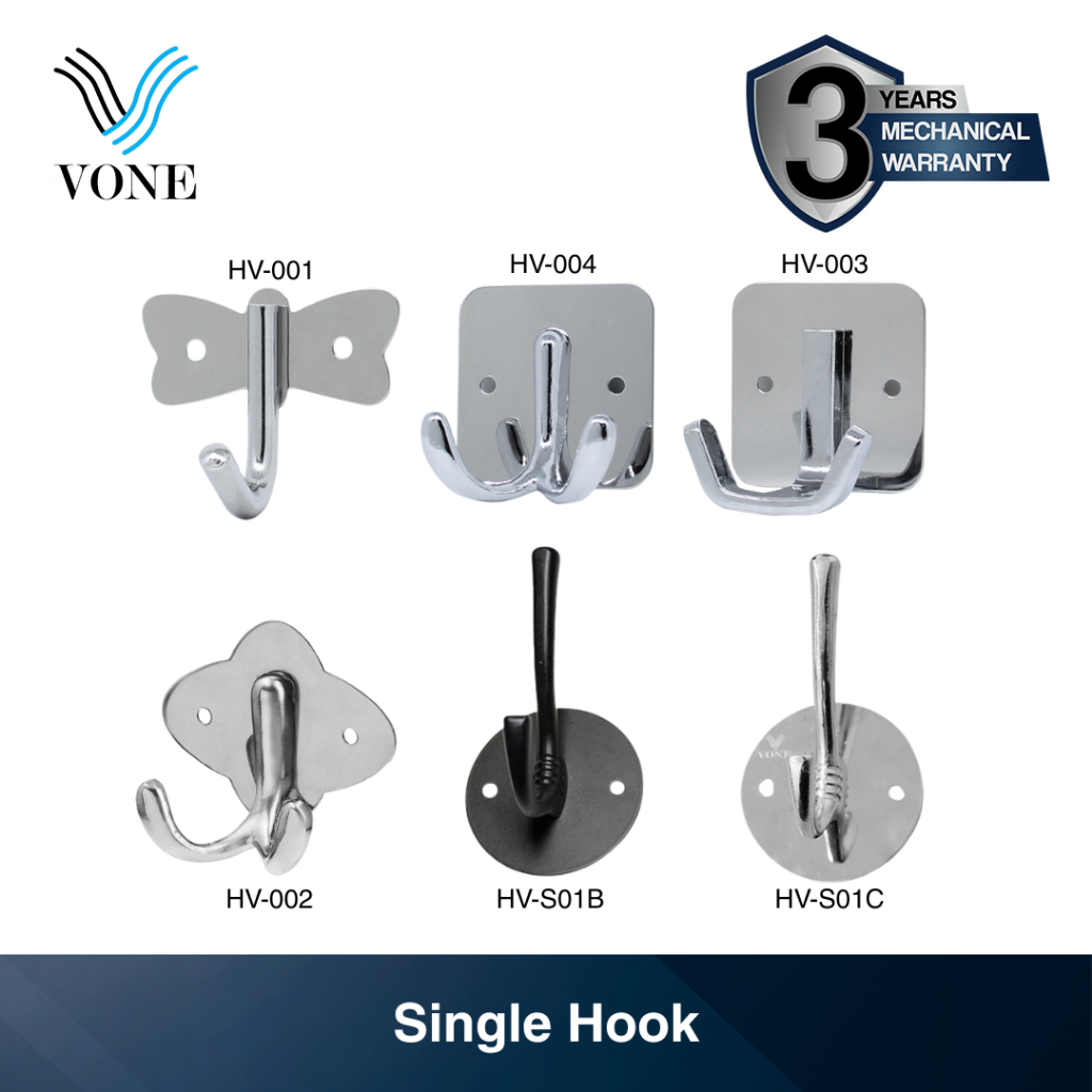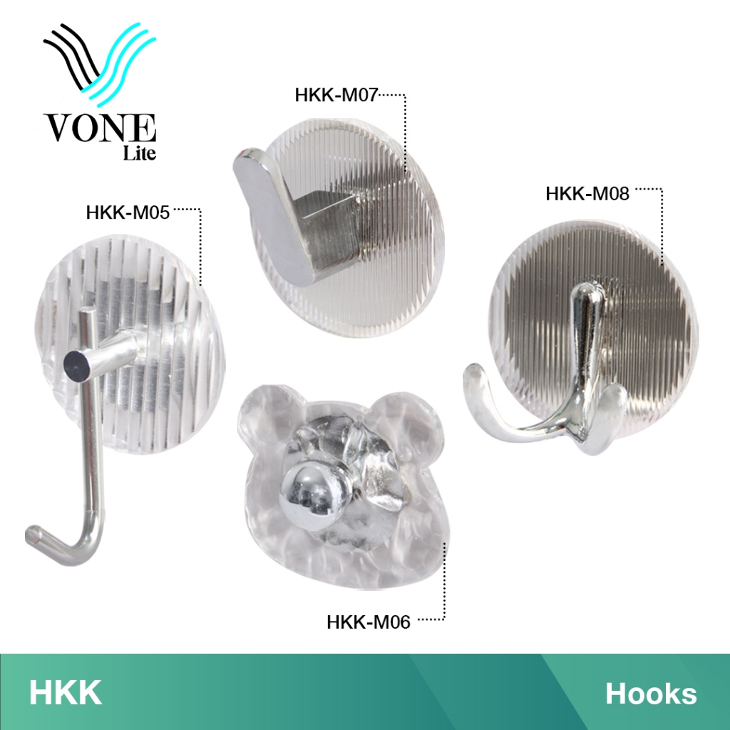 VONE Gantungan Baju Handuk Rak Hanger Mandi Dinding Stainless Acrylic Single Hook Satuan 2 Kait