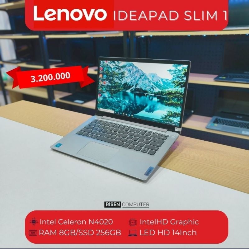 Laptop Lenovo Ideapad Slim 1 Intel Celeron N4020 RAM 8GB SSD NVME 256GB HD 14inch Second Seken Bekas Bagus Sekolah Kerja Kuliah