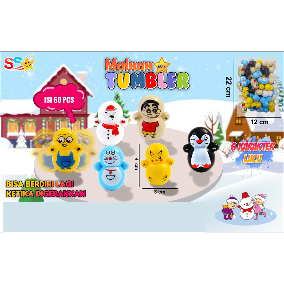 60 PCS Mainan Boneka Goyang Joget Lucu / Mainan Mini Daruma Tumbler Berayun