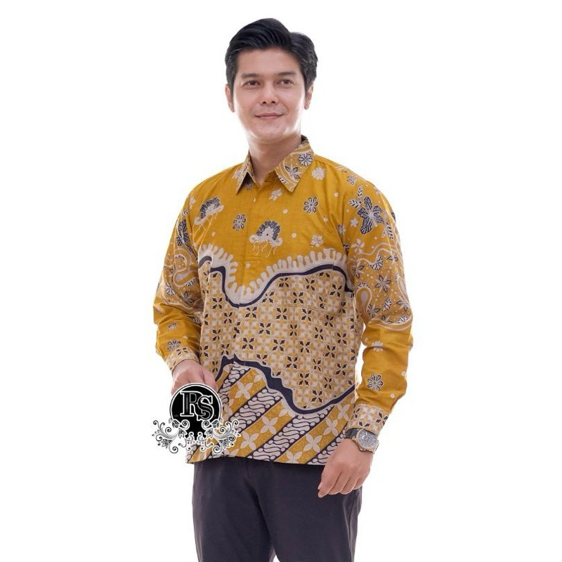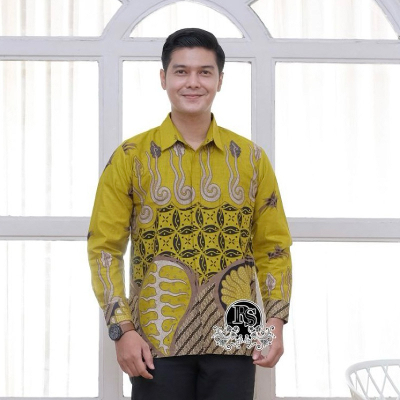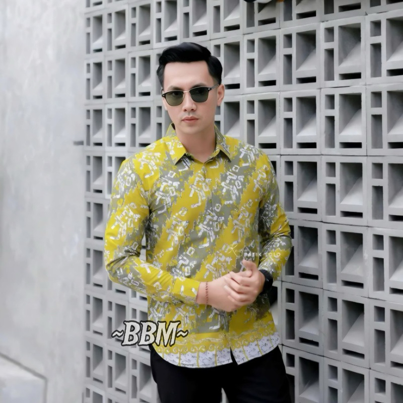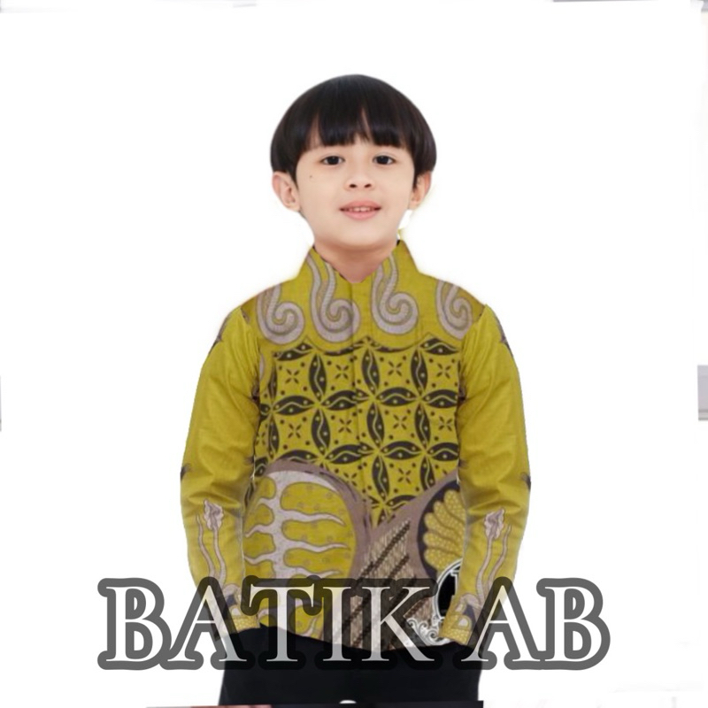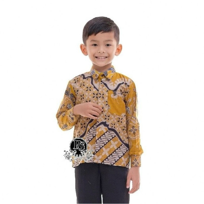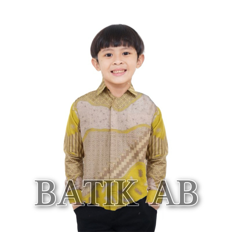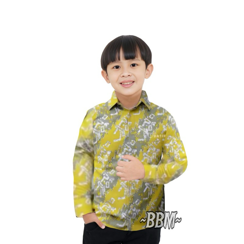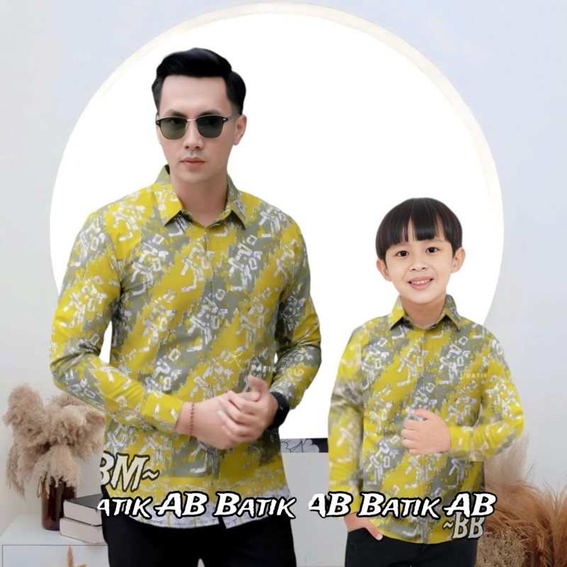Kemeja Batik Anak Laki-laki Batik Ayah dan Batik Anak Cowok Lengan Panjang Warna Kuning Lemon