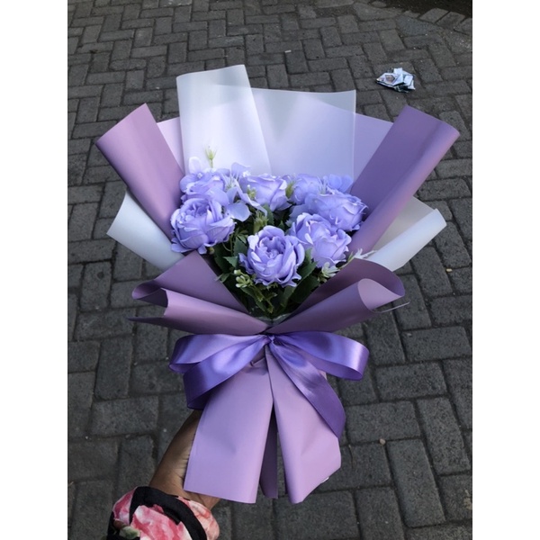 REAL PICT BUKET BUNGA UNGU/ LILAC/ BUKET BUNGA PALSU/ MAWAR UNGU