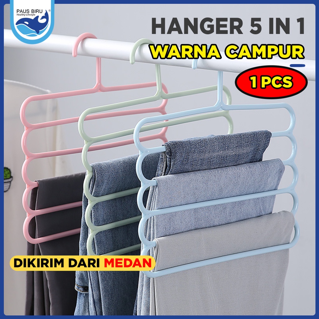 Paus Biru - Hanger Jilbab 5 in 1 / Hanger Baju / Hanger Gantungan Jilbab / Gantungan Hanger pakaian
