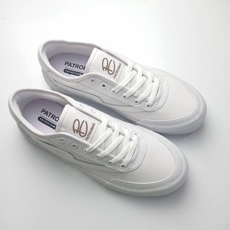 Patrobas New Ivan Triple White Low Cut | Sepatu Patrobas Original | Sepatu Lokal Warna Putih Sepatu Pria Wanita Murah