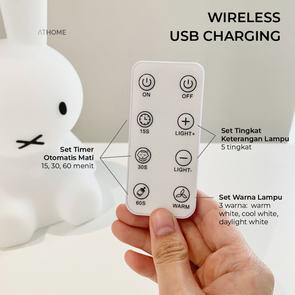 ATHOME SWEET BUNNY Night Light / Lampu Tidur LED Kamar Anak Lucu Pakai Remot