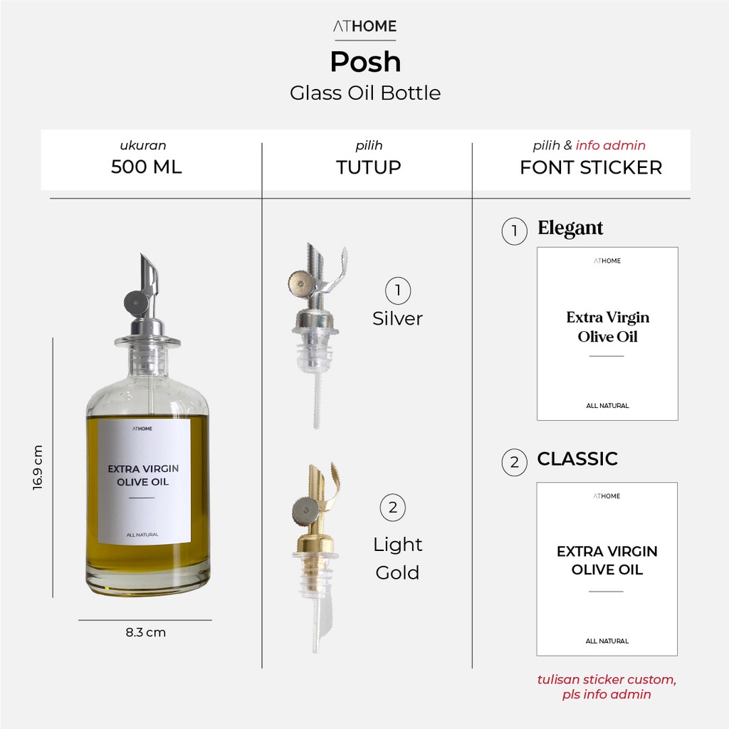 ATHOME POSH Glass Oil Bottle 350ml 500ml/ Botol Kaca Tempat Minyak Goreng Saus Vinegar