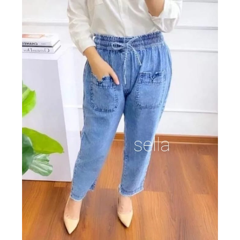 sella celana boyfrend softjeans model baggy pants terbaru pinggang karet rawis 2 kantong depan