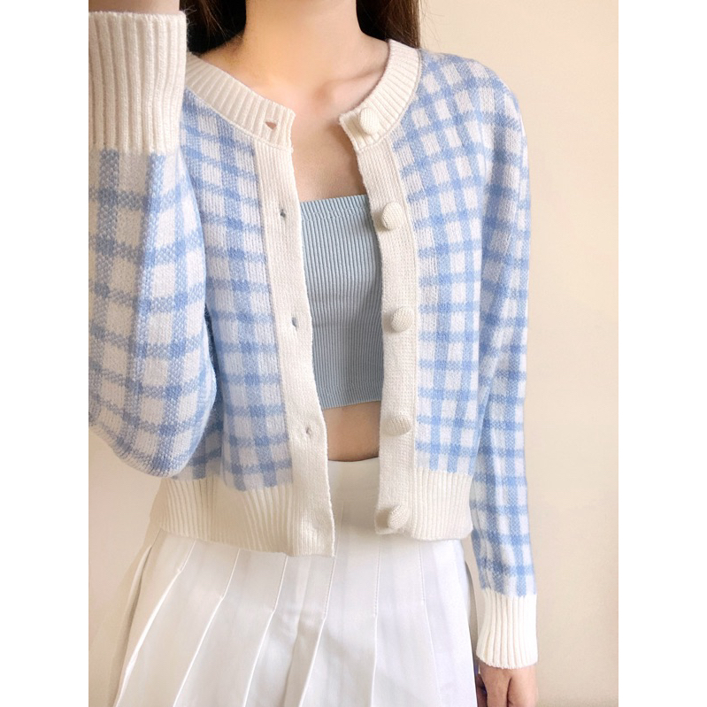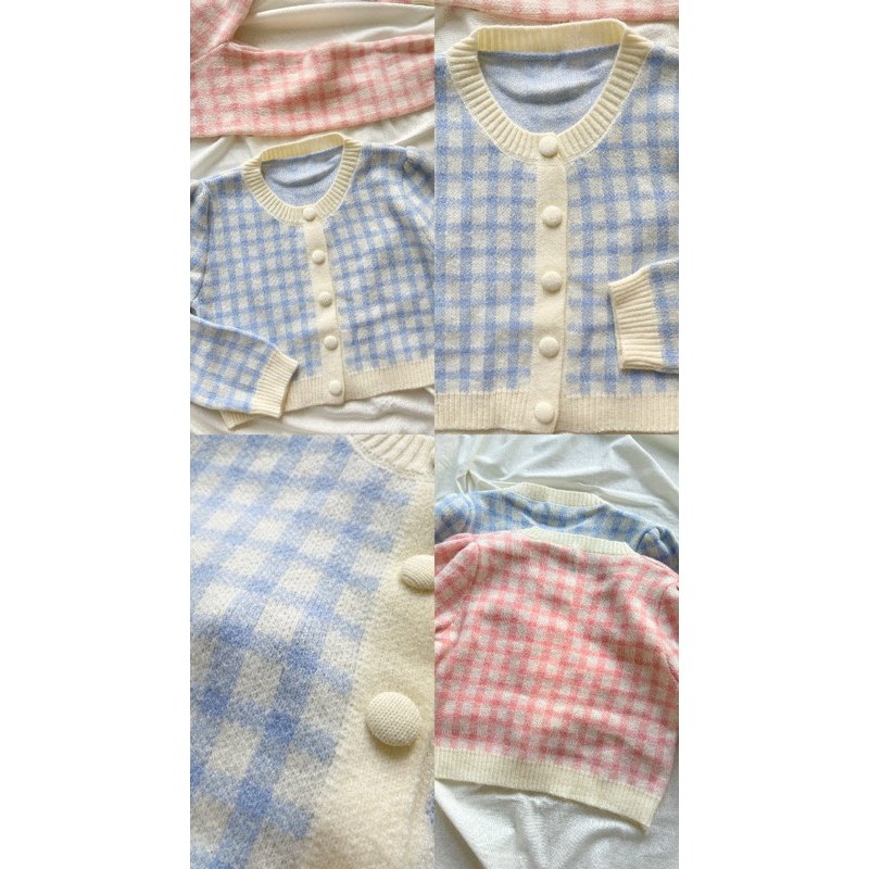 Keely Daily - Harriet Gingham Knit Cardigan cardi outer rajut motif kotak wanita