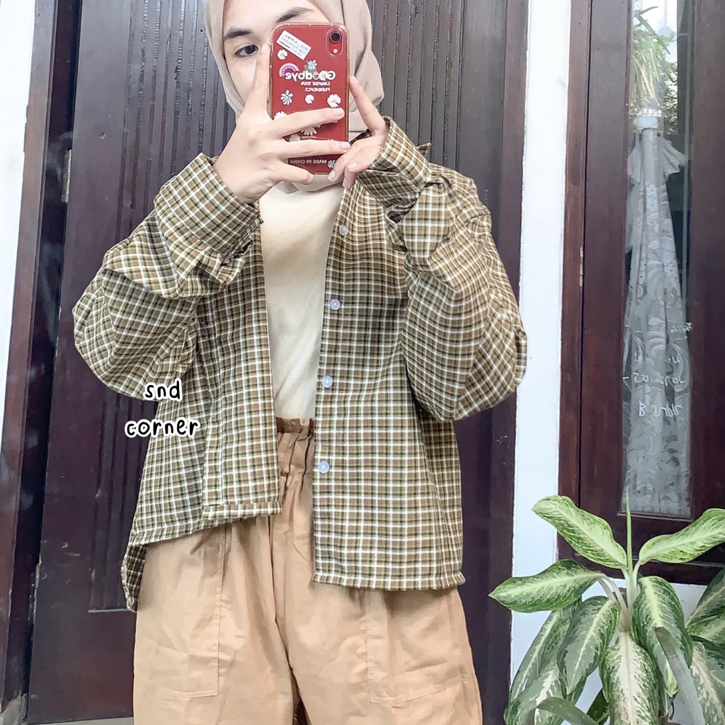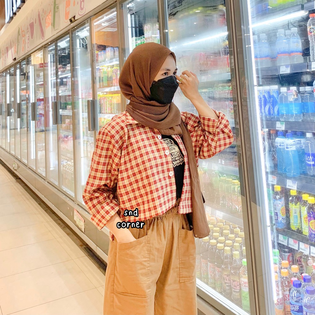 CROP TARTAN SHIRT TOP KEMEJA TARTAN OVERSIZE CROP KEMEJA ATASAN KOTAK KOTAK KOREA
