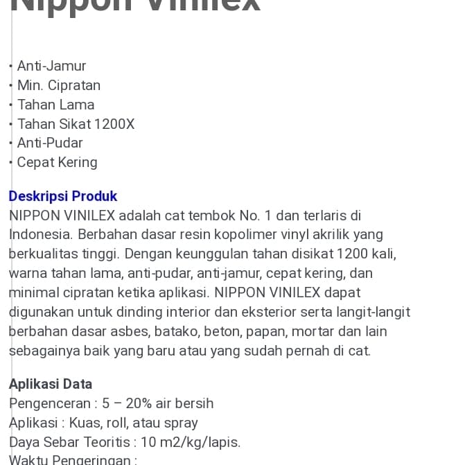 CAT TEMBOK EXTERIOR & INTERIOR VINILEX 5KG WHITE KODE 300